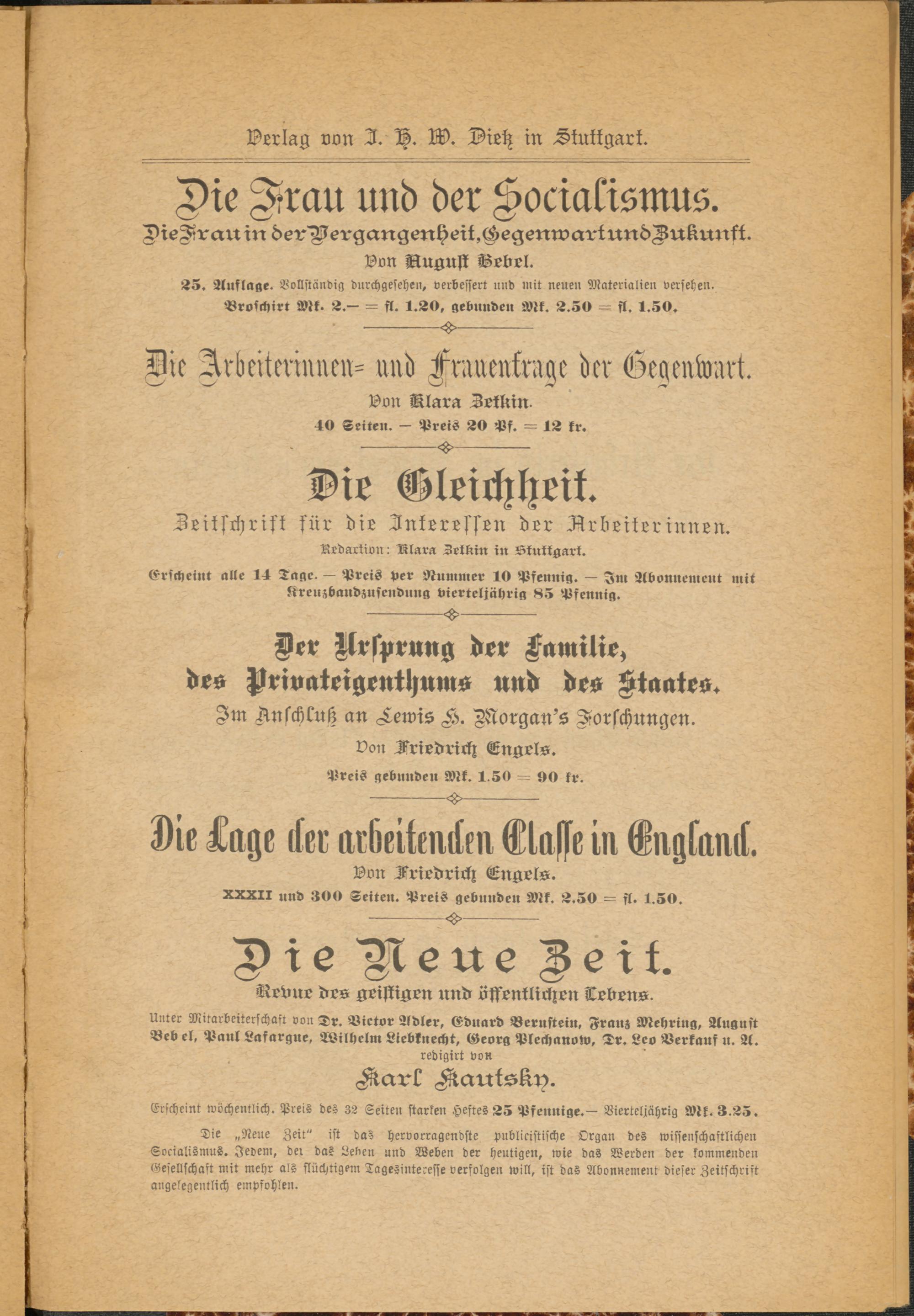 DieNeue Zeit" ist das hervorragendste publicistische Organ des wissenschaftlichen Socialismus. Jedem, der das Leben und Weben der heutigen, wie das Werden der kommenden Gesellschaft mit mehr als flüchtigem Tagesinteresse verfolgen will, ist das Abonnement dieser Zeitschrift angelegentlich empfohlen.