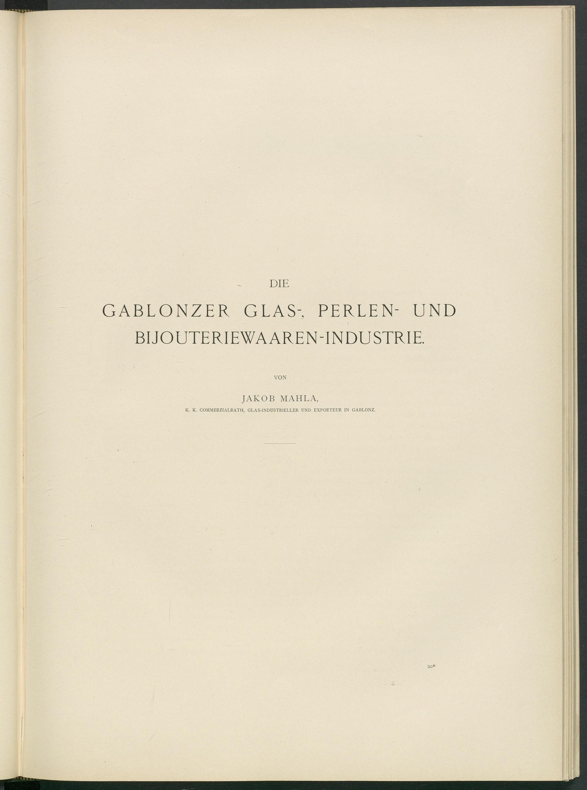 K. K. COMMERZIALRATH, GLAS-INDUSTRIELLER UND EXPORTEUR IN GABLONZ.