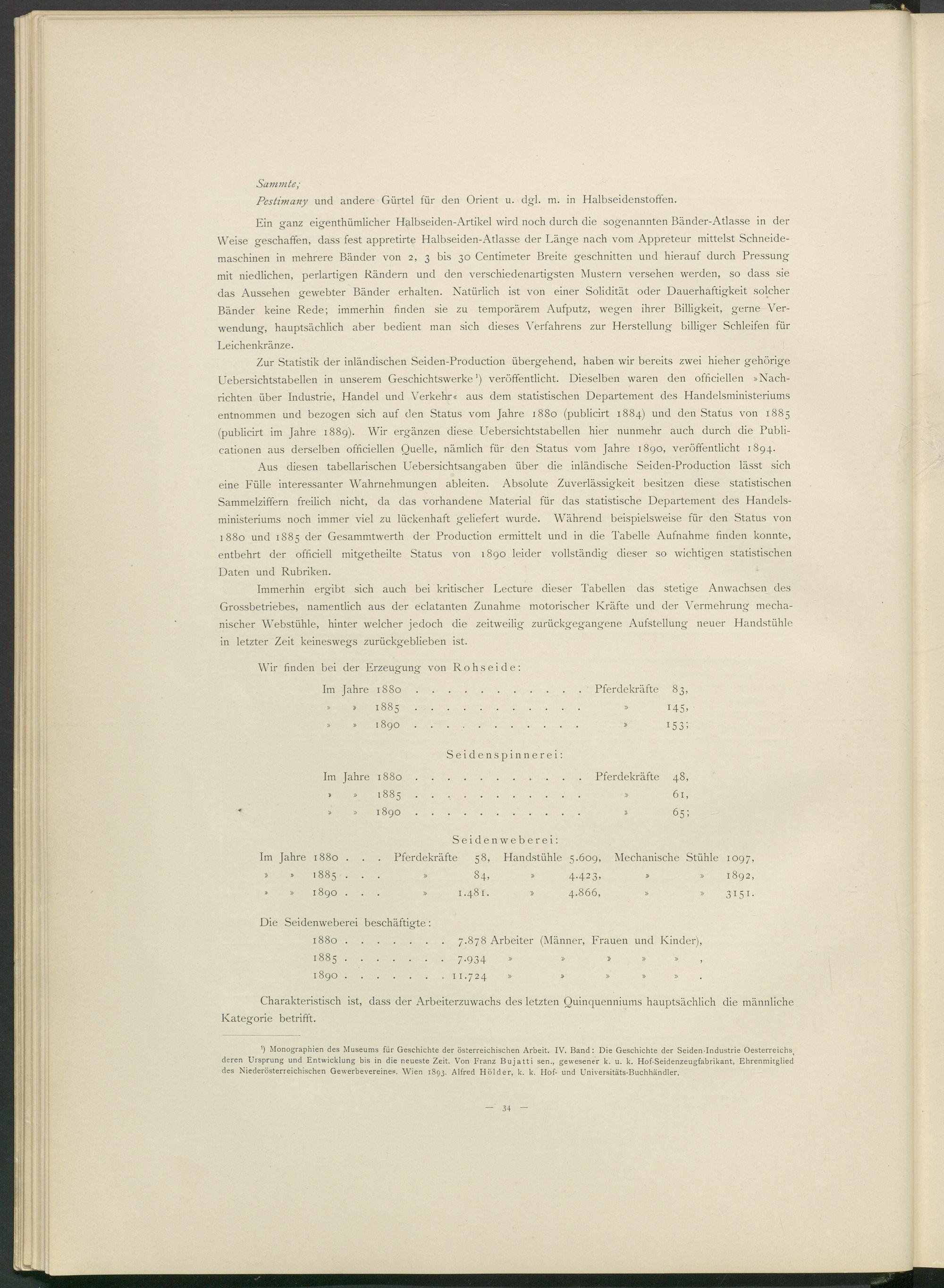 ’) Monographien des Museums für Geschichte der österreichischen Arbeit. IV. Band: Die Geschichte der Seiden-Industrie Oesterreichs i deren Ursprung und Entwicklung bis in die neueste Zeit. Von Franz Bujatti sen., gewesener k. u. k. Hof-Seidenzeugfabrikant, Ehrenmitglied des Niederösterreichischen Gewerbevereines. Wien 1893. Alfred Holder, k. k. Hof- und Universitäts-Buchhändler.
