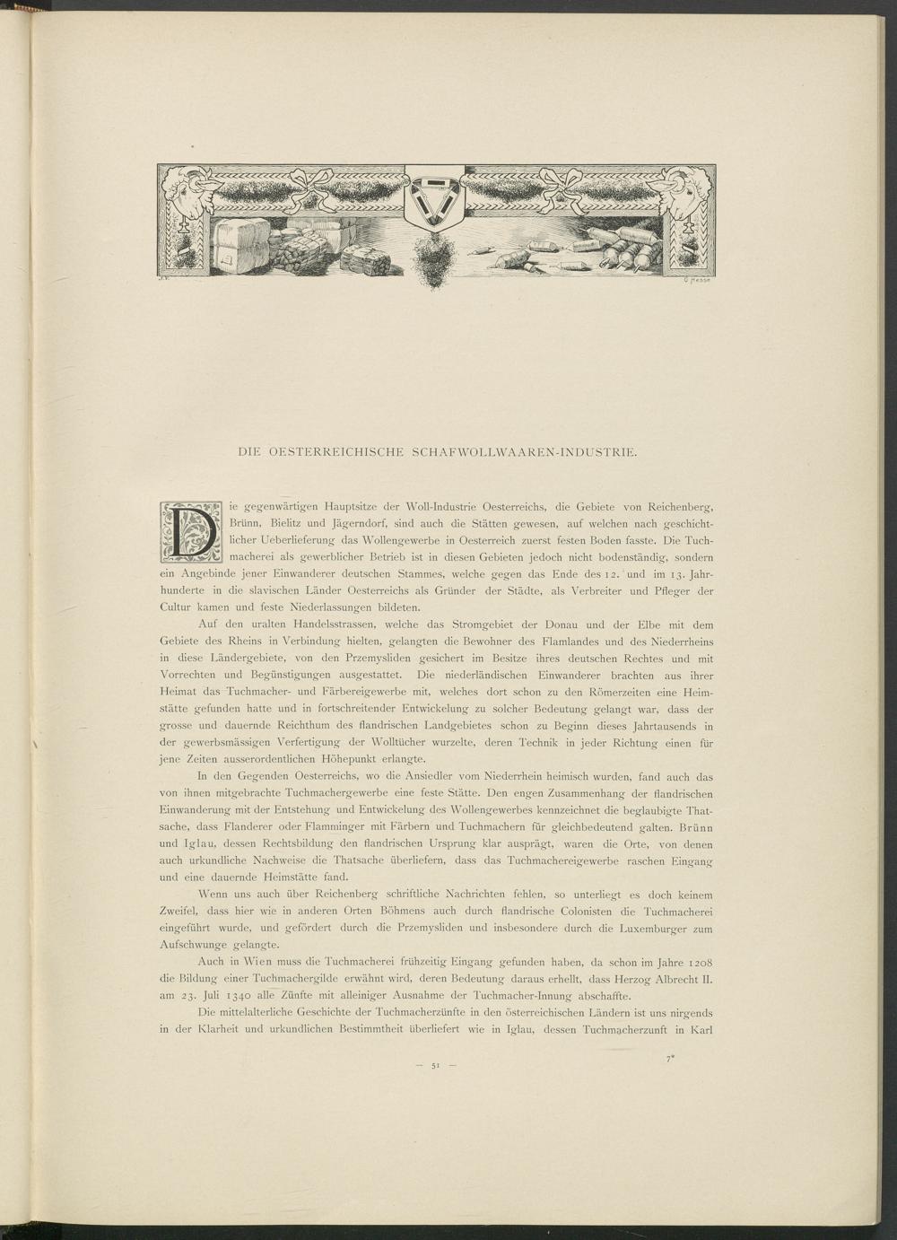 i e gegenwärtigen Hauptsitze der Woll-Industrie Oesterreichs, die Gebiete von Reichenberg, Brünn, Bielitz und Jägerndorf, sind auch die Stätten gewesen, auf welchen nach geschichtlicher Ueberlieferung das Wollengewerbe in Oesterreich zuerst festen Boden fasste. Die Tuchmacherei als gewerblicher Betrieb ist in diesen Gebieten jedoch nicht bodenständig, sondern ein Angebinde jener Einwanderer deutschen Stammes, welche gegen das Finde des 12. und im 13. Jahrhunderte in die slavischen Länder Oesterreichs als Gründer der Städte, als Verbreiter und Pfleger der Cultur kamen und feste Niederlassungen bildeten.