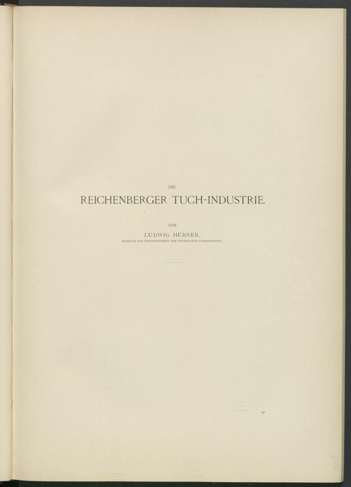 DIE REICHENBERGER TUCH-INDUSTRIE VON LUDWIG HÜBNER, SECRETÄR DER GENOSSENSCHAFT DER TUCHMACHER IN REICHENBERG.