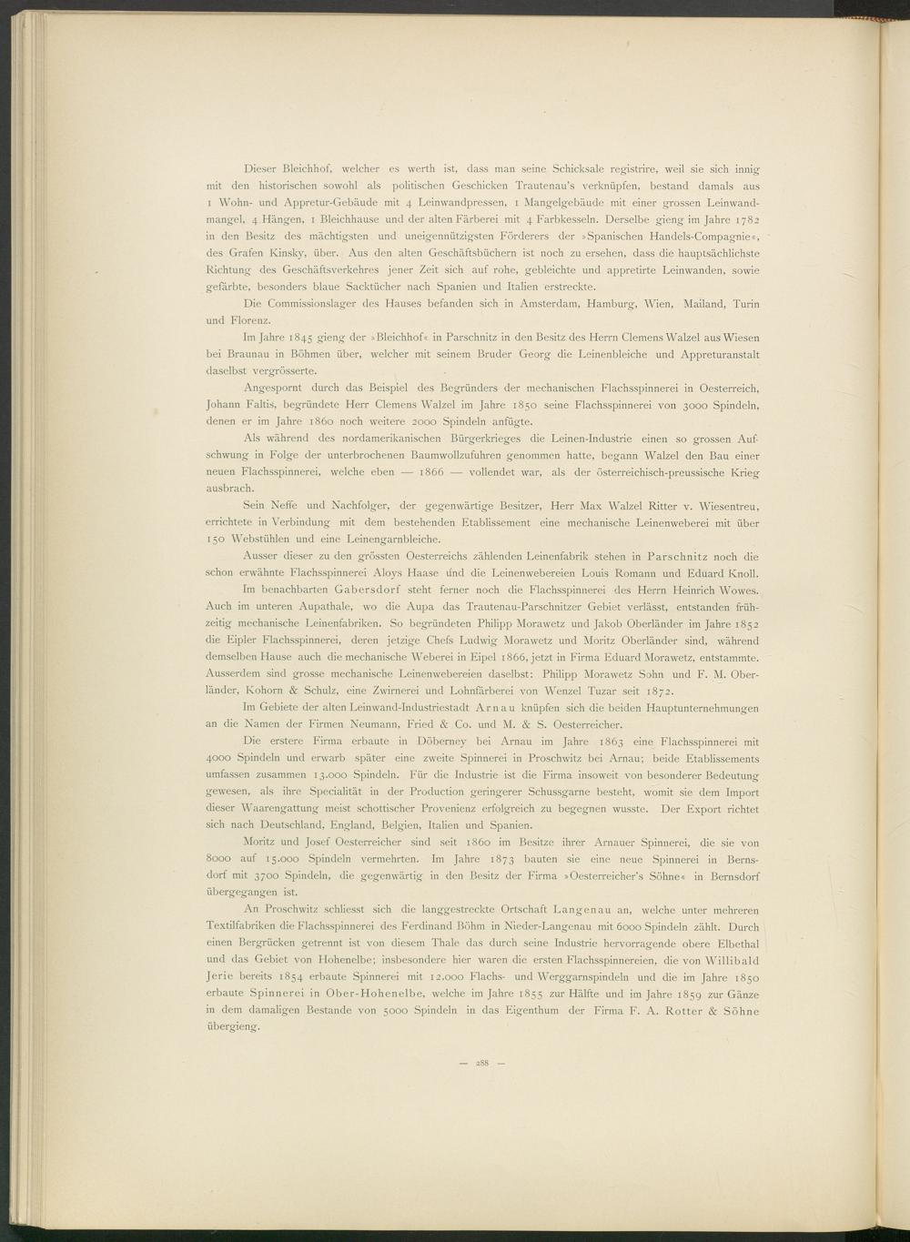 Als während des nordamerikanischen Bürgerkrieges die Leinen-Industrie einen so grossen Aufschwung in Folge der unterbrochenen Baumwollzufuhren genommen hatte, begann Walzel den Bau einer neuen Flachsspinnerei, welche eben — 1866 — vollendet war, als der österreichisch-preussische Krieg ausbrach.