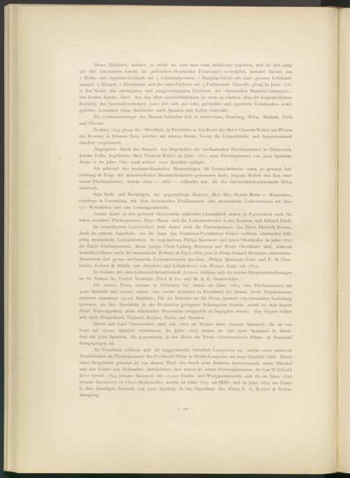 Moritz und Josef Oesterreicher sind seit 1860 im Besitze ihrer Arnauer Spinnerei, die sie von 8000 auf 15.000 Spindeln vermehrten. Im Jahre 1873 bauten sie eine neue Spinnerei in Bernsdorf mit 3700 Spindeln, die gegenwärtig in den Besitz der Firma »Oesterreicher’s Söhne« in Bernsdorf übergegangen ist.