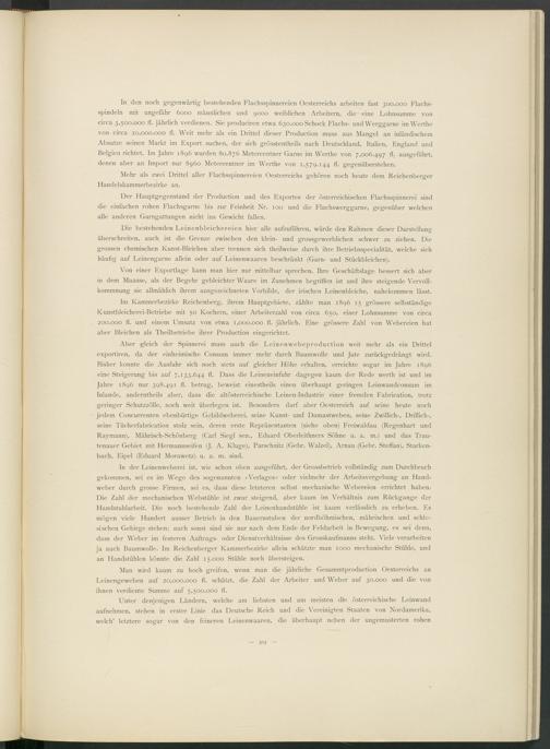 Der Hauptgegenstand der Production und des Exportes der österreichischen Flachsspinnerei sind die einfachen rohen Flachsgarne bis zur Beinheit Nr. 100 und die Flachswerggarne, gegenüber welchen alle anderen Garngattungen nicht ins Gewicht fallen.
