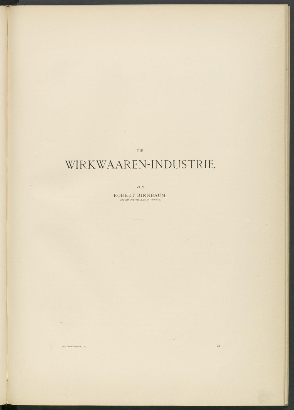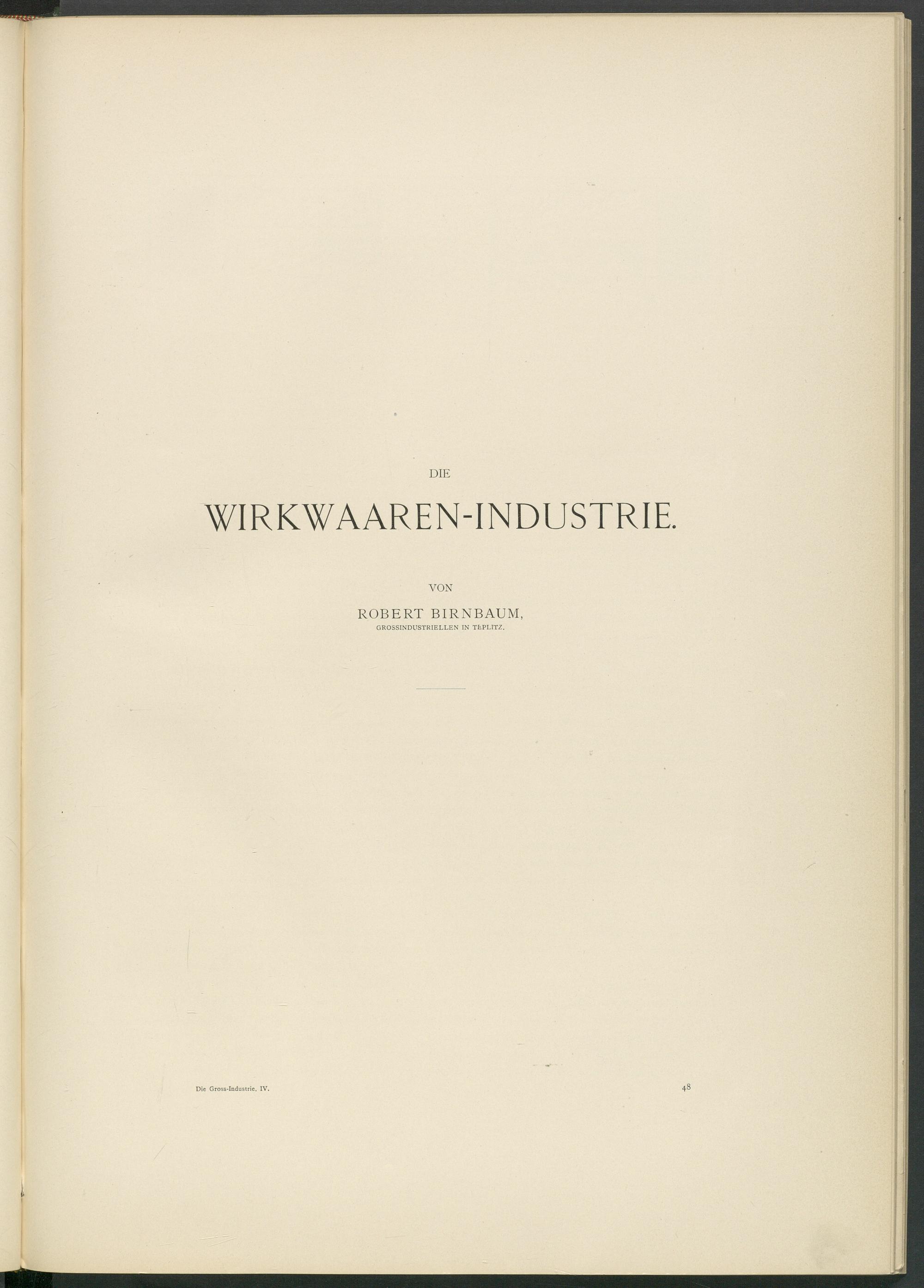 dip: WIRKWAAREN-INDUSTRIE. VON ROBERT BIRNBAUM, GROSSINDUSTRIELLEN IN TEPLITZ. Die Gross-Industrie. IV. 48