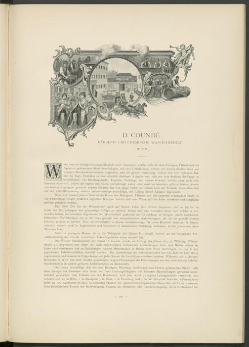 Das Wiener Etablissement der Firma D. Counde wurde zu Anfang des Jahres 1877 in Währing, Wienerstrasse 41, gegründet und hatte die dazu nothwendigen technischen Einrichtungen nach dem Muster seines im Jahre 1848 errichteten und an Erfahrungen reichen Mutterhauses in Berlin nach Wien übertragen, wo sie in den gepachteten Fabrikslocalitäten installirt wurden. Die Ausdehnung des Fabriksbetriebes hat von Jahr zu Jahr stetig zugenommen und mussten in Folge dessen vor jeder Saison die Localitäten erweitert werden. Während des 21jährigen Bestandes in Wien war man viermal gezwungen, wegen Platzmangel die Einrichtungen aus den verwendeten Fabriksräumlichkeiten in andere grössere Etablissements zu übersiedeln.