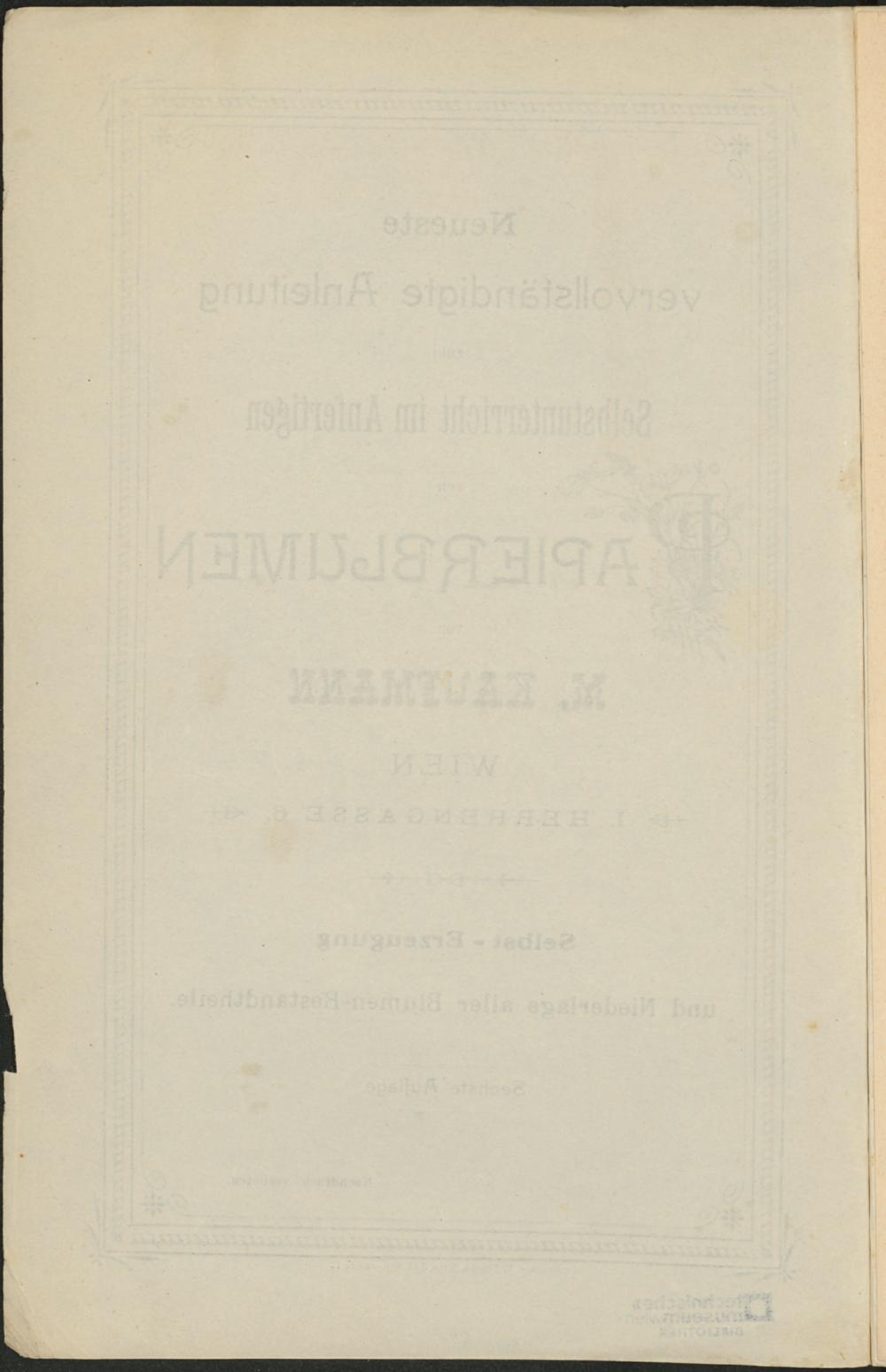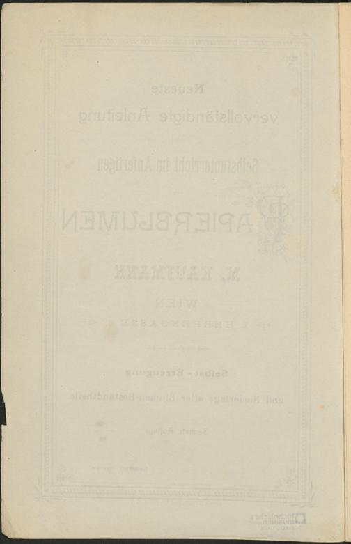 Neueste vollständige Anleitung zum Selbstunterricht im Anfertigen von Papierblumen / von M. Kaufmann, Wien I. Herrengasse 6 ; Selbsterzeugung und Niederlage aller Blumen-Bestandtheile