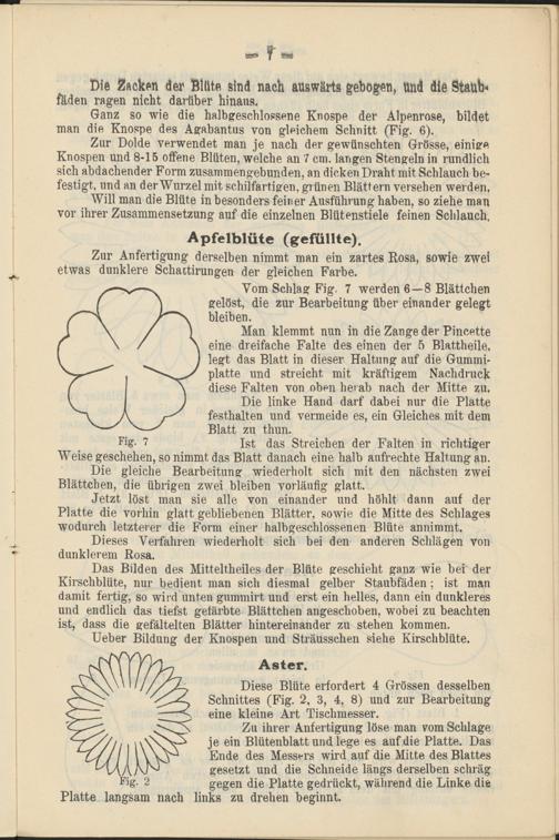 Diese Blüte erfordert 4 Grössen desselben Schnittes (Fig. 2, 3, 4, 8) und zur Bearbeitung eine kleine Art Tischmesser.