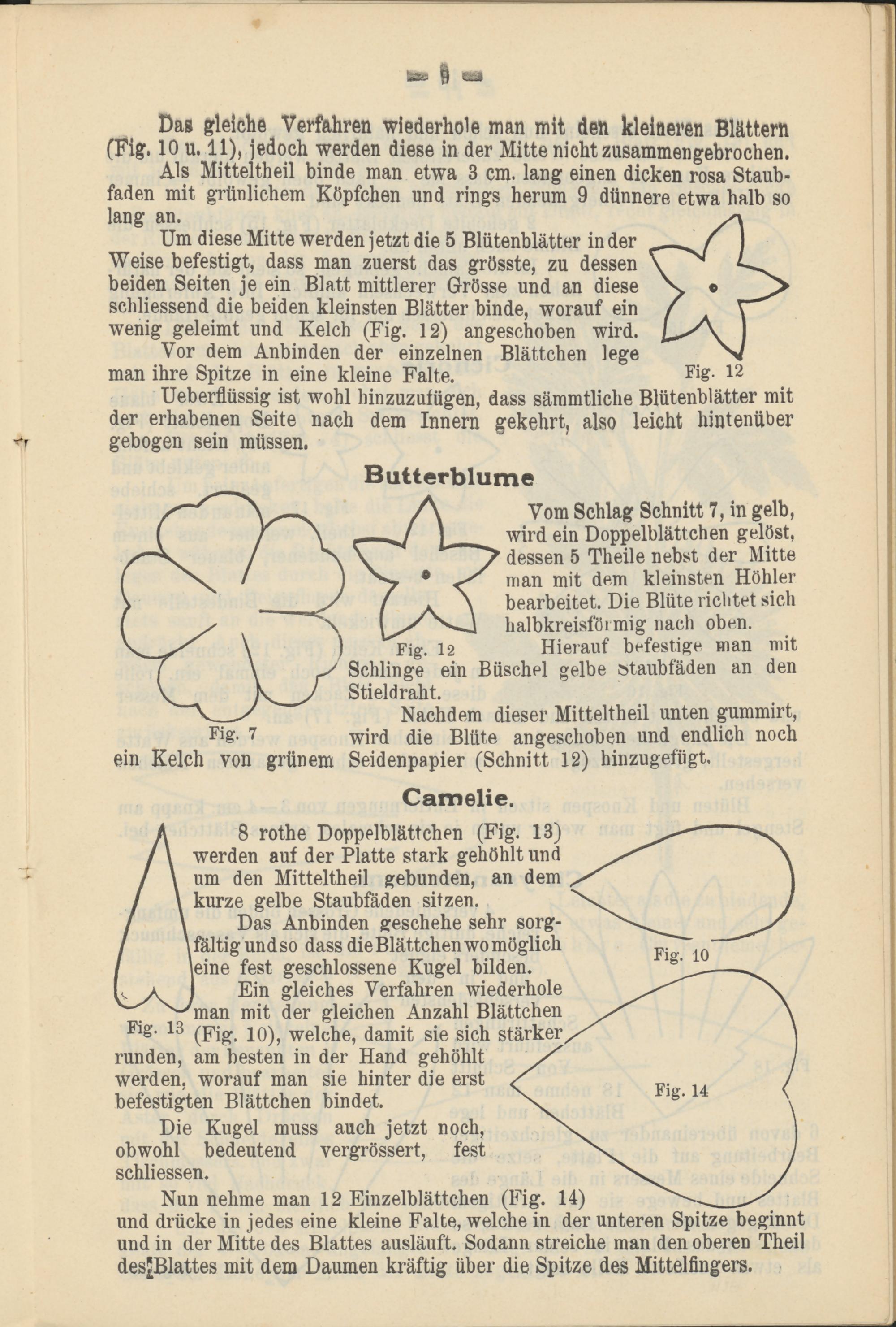 Das gleiche Verfahren wiederhole man mit den kleineren Blättern (Fig. 10 u. 11), jedoch werden diese in der Mitte nicht zusammengebrochen.