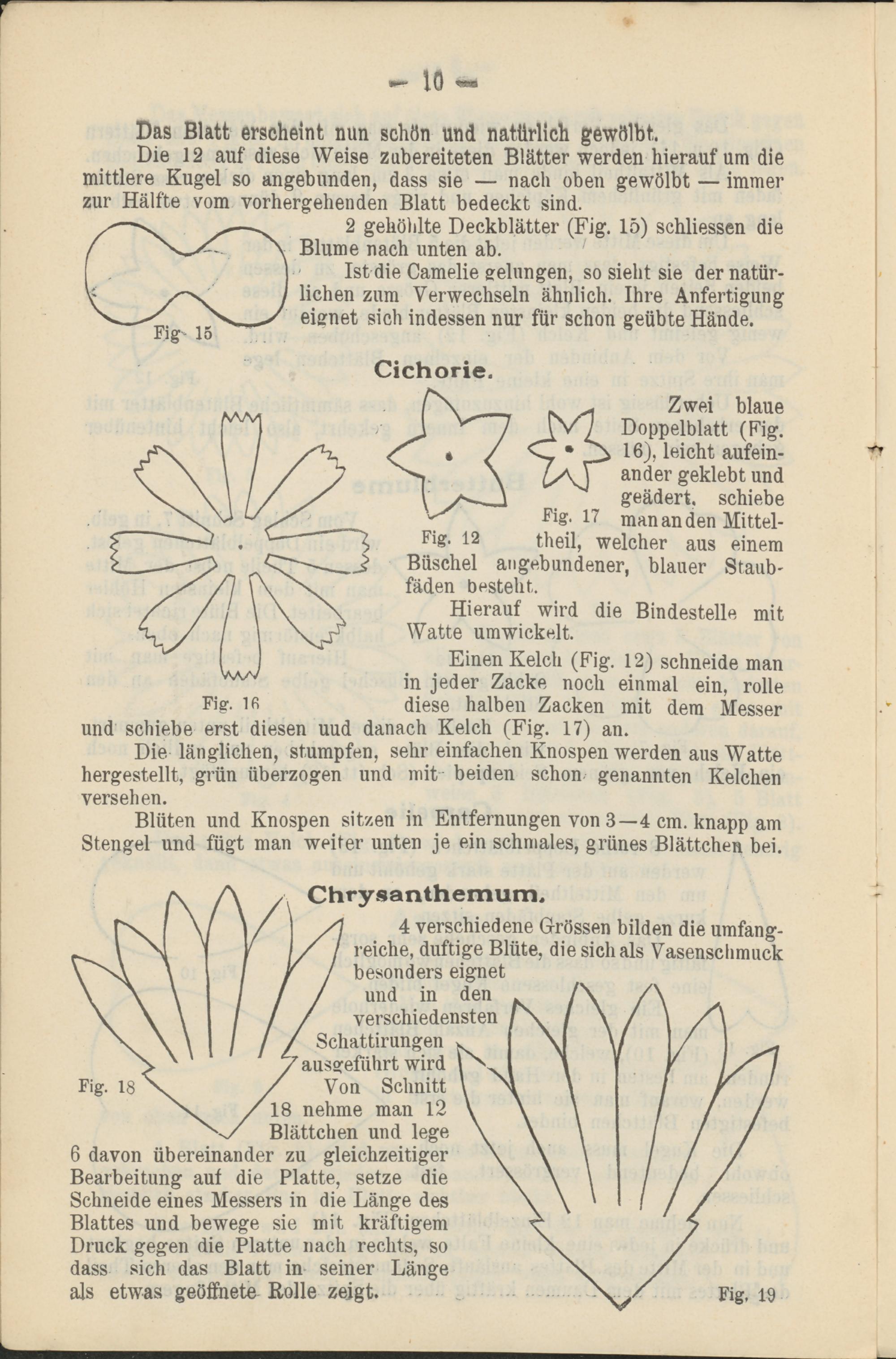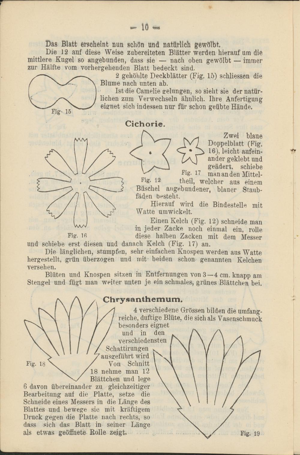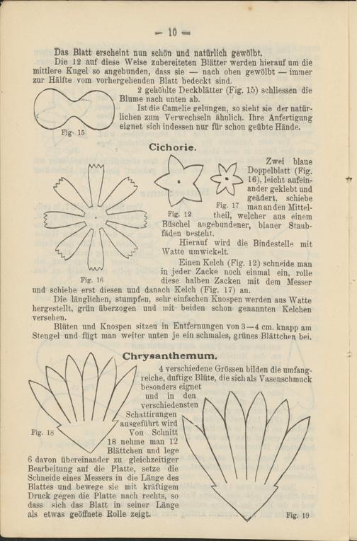 Einen Kelch (Fig. 12) schneide man in jeder Zacke noch einmal ein, rolle Fig. iß diese halben Zacken mit dem Messer