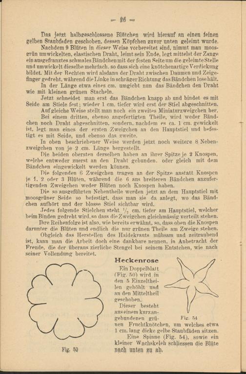 Obgleich das Herstellen des Haidekrauts mühsam und zeitraubend ist, kann man die Arbeit doch eine dankbare nennen, in Anbetracht der Freude, die der überaus zierliche Stengel bei seinem Entstehen, wie nach seiner Vollendung bereitet.