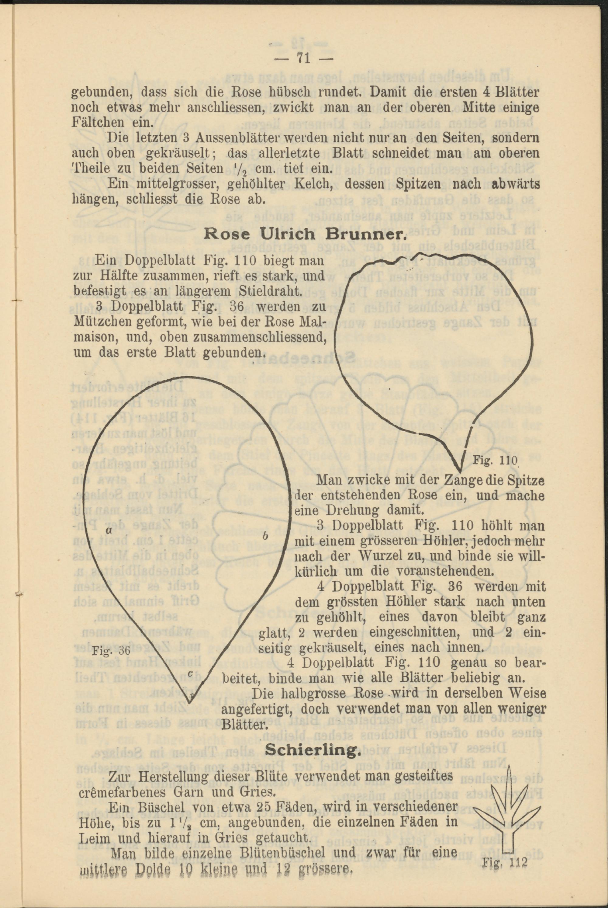 Ein Doppelblatt Fig. 110 biegt man zur Hälfte zusammen, rieft es stark, und befestigt es an längerem Stieldraht.