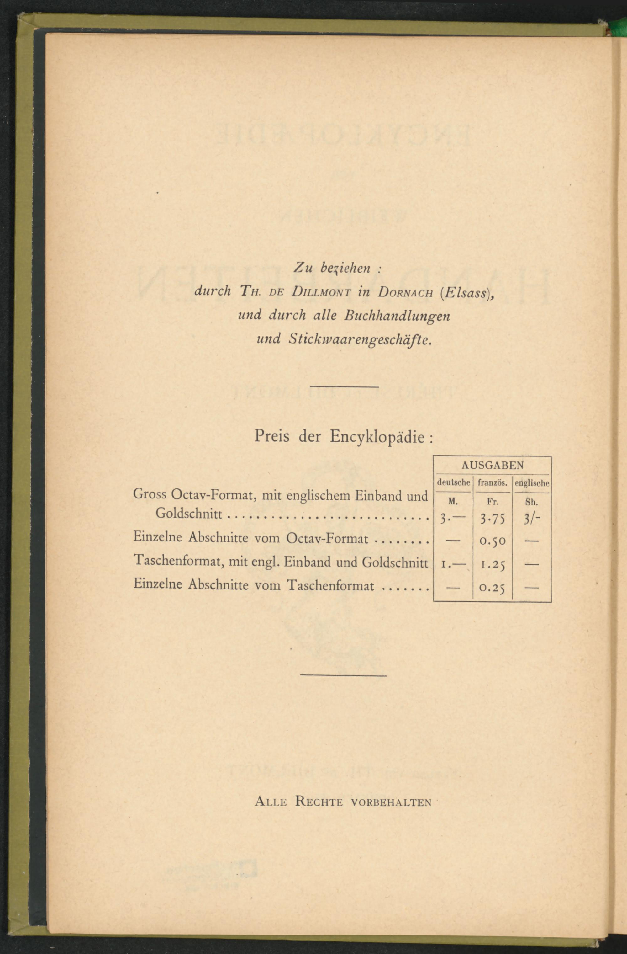 durch Th. de Dilimont in Dörnach (Eisass), und durch alle Buchhandlungen und Sticktvaarengeschäfte.