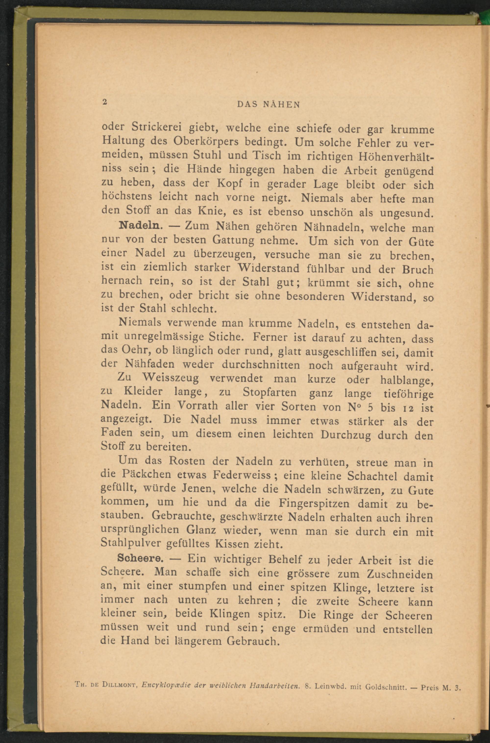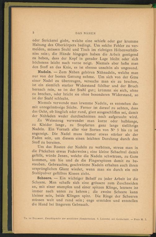 Th. de Dillmont, Encyklop<rdie der weiblichen Handarbeiten. 8. Leinwbd. mit Goldschnitt. «— Preis M. 3.