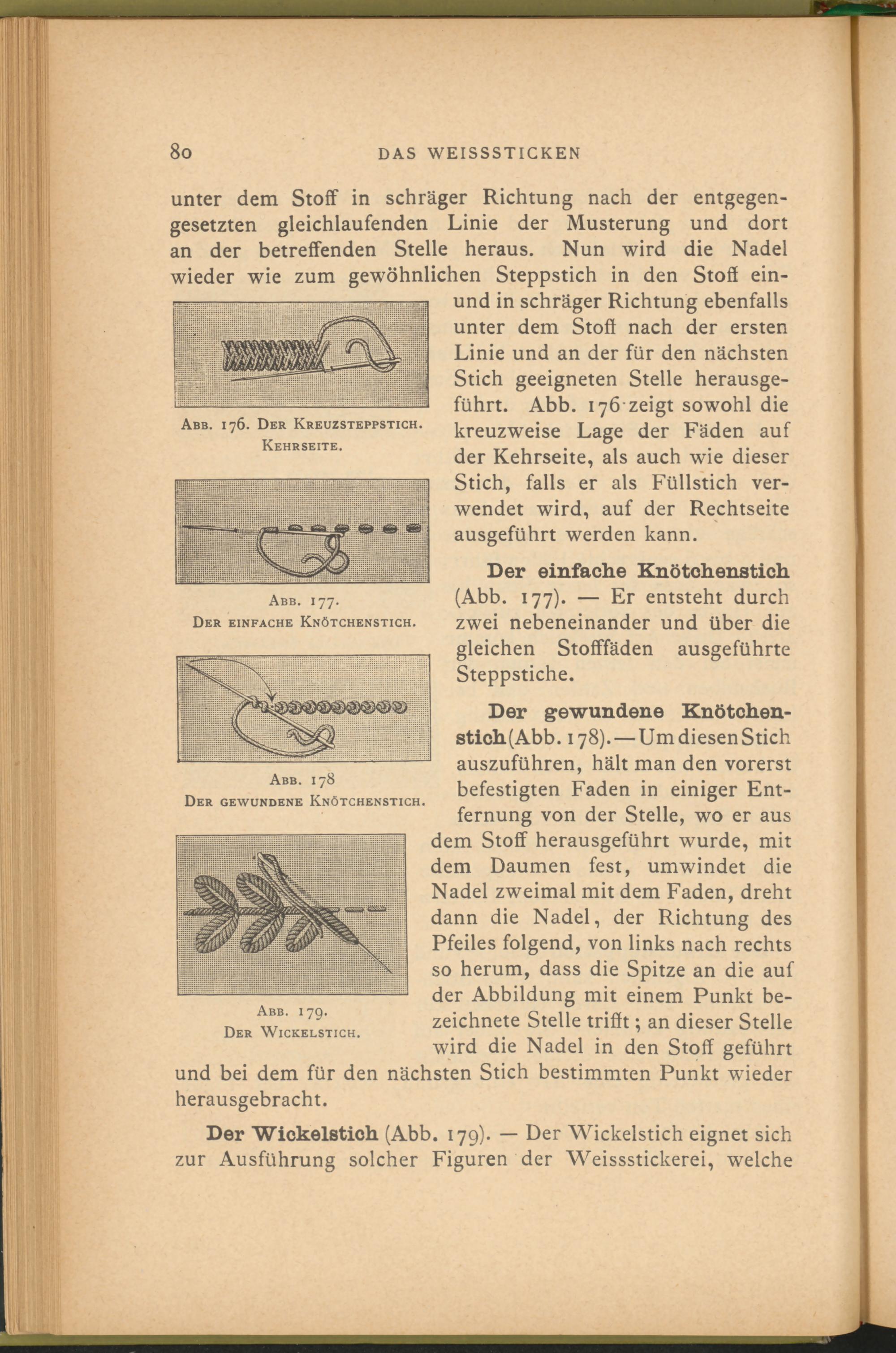 Der Wickelstioh (Abb. 179). — Der Wickelstich eignet sich zur Ausführung solcher Figuren der Weissstickerei, welche
