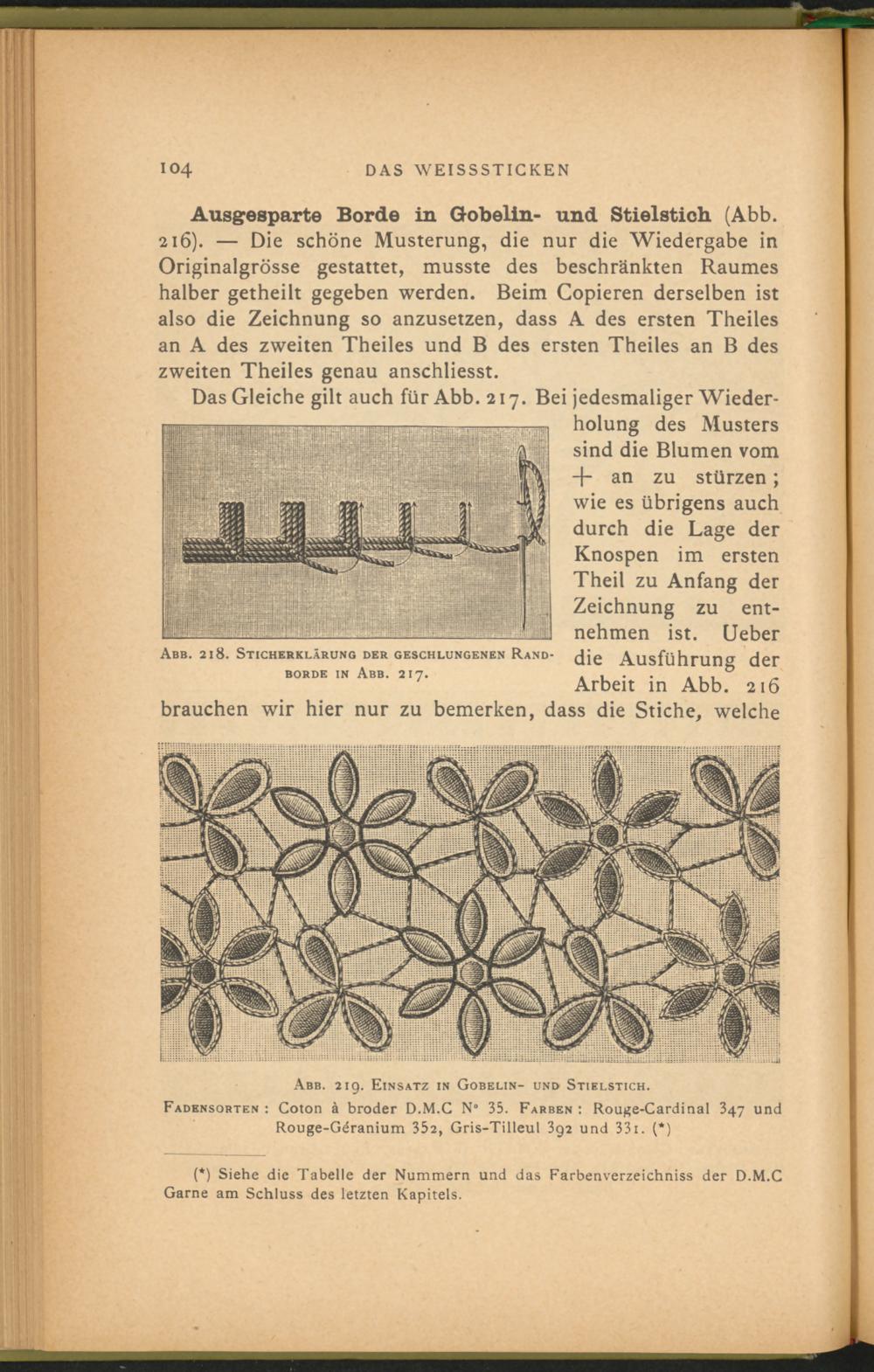 (*) Siehe die Tabelle der Nummern und das Farbenverzeichniss der D.M.C Garne am Schluss des letzten Kapitels.