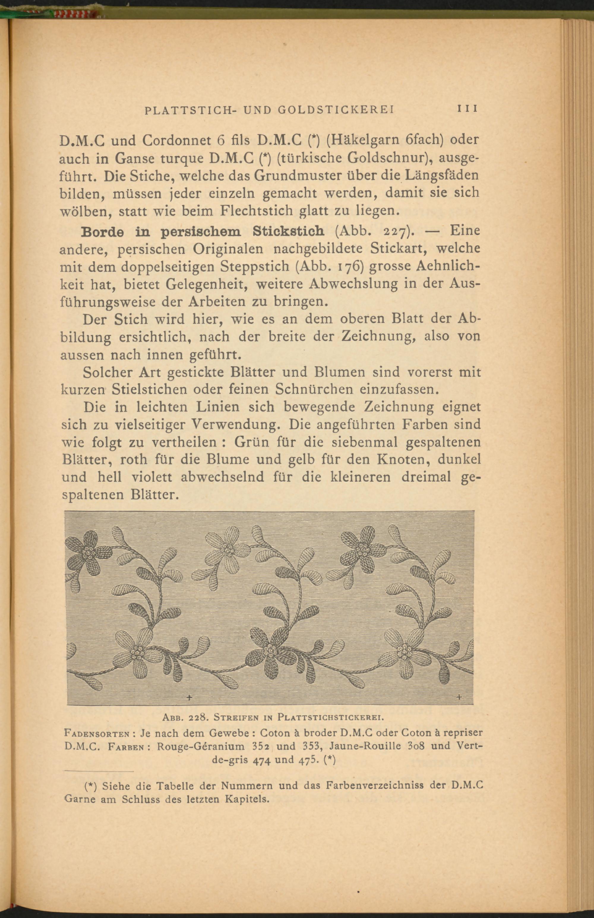 (*) Siehe die Tabelle der Nummern und das Farbenverzeichniss der D.M.C Garne am Schluss des letzten Kapitels.