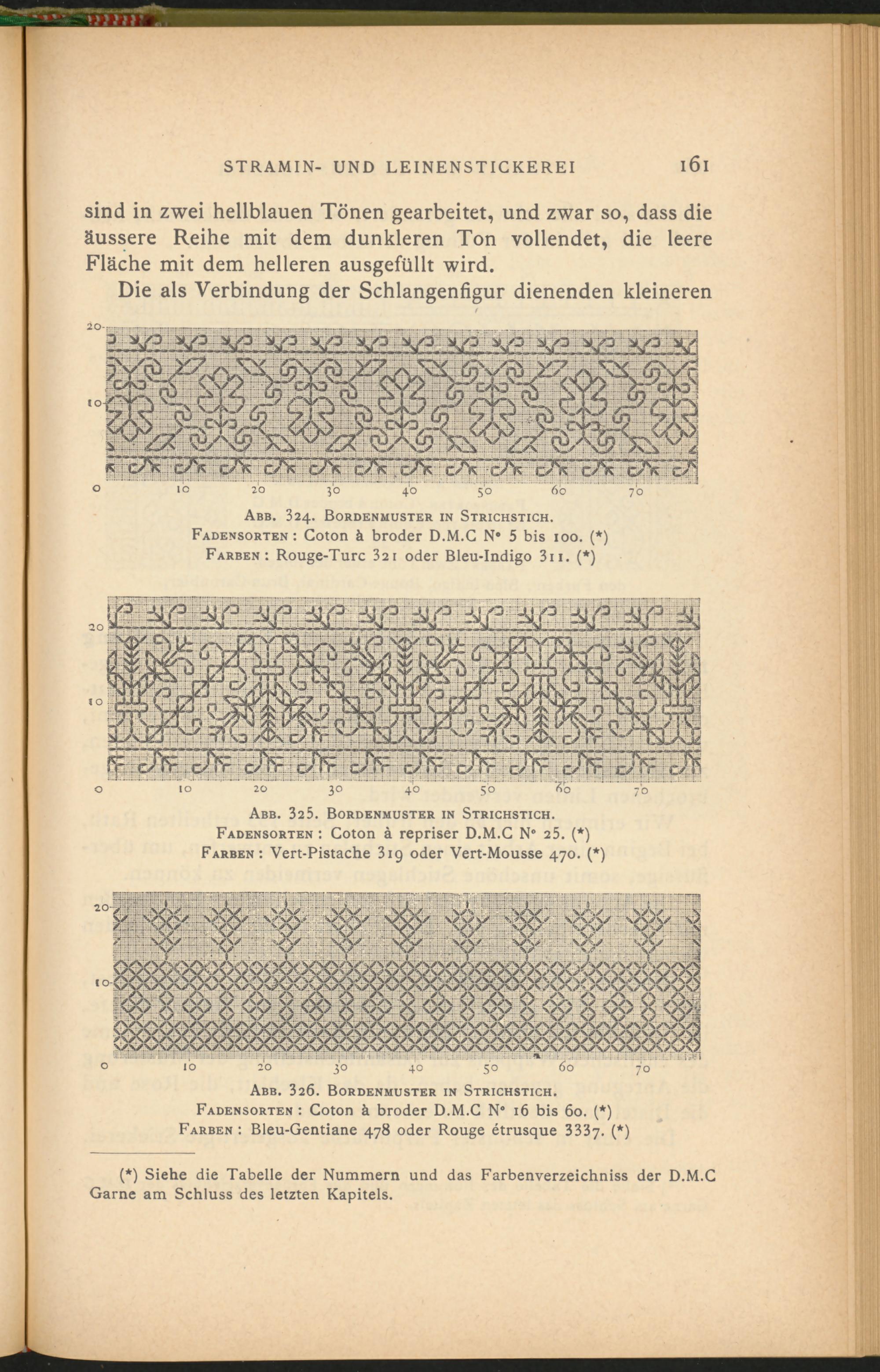 (*) Siehe die Tabelle der Nummern und das Farbenverzeichniss der D.M.C Garne am Schluss des letzten Kapitels.