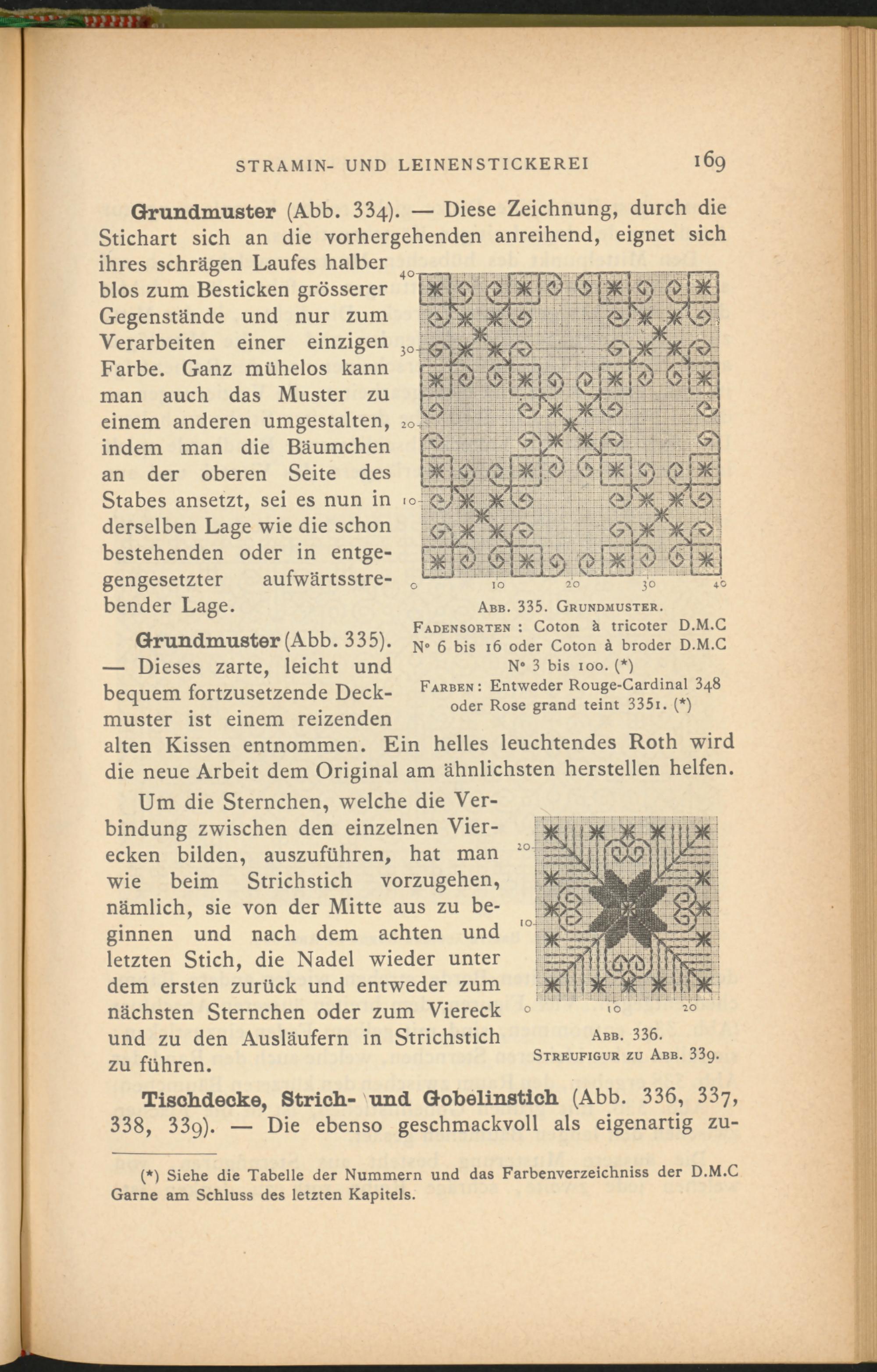 (*) Siehe die Tabelle der Nummern und das Farbenverzeichniss der D.M.C Garne am Schluss des letzten Kapitels.