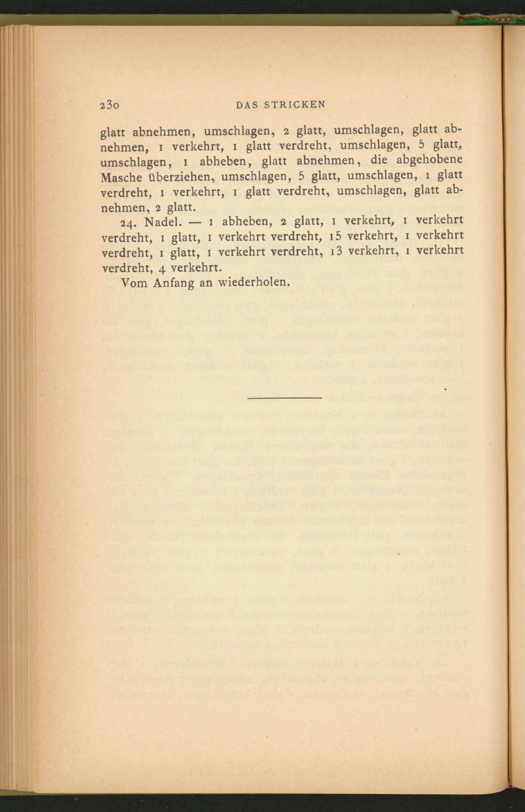 24. Nadel. — 1 abheben, 2 glatt, 1 verkehrt, 1 verkehrt