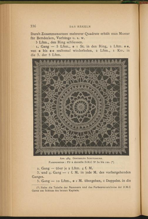 Abb. 484. Gehäkelte Schutzdecke. Fadensorten : Fil à dentelle D.M.C N* 5o bis 120. (*)