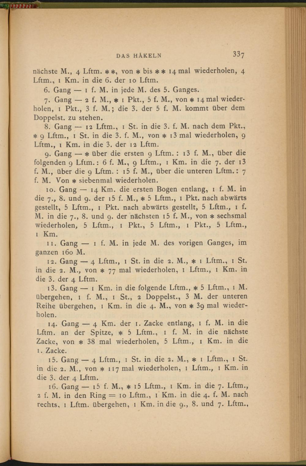 16. Gang — 15 f. M., * i5 Lftm., 1 Km. in die 7. Lftm.,