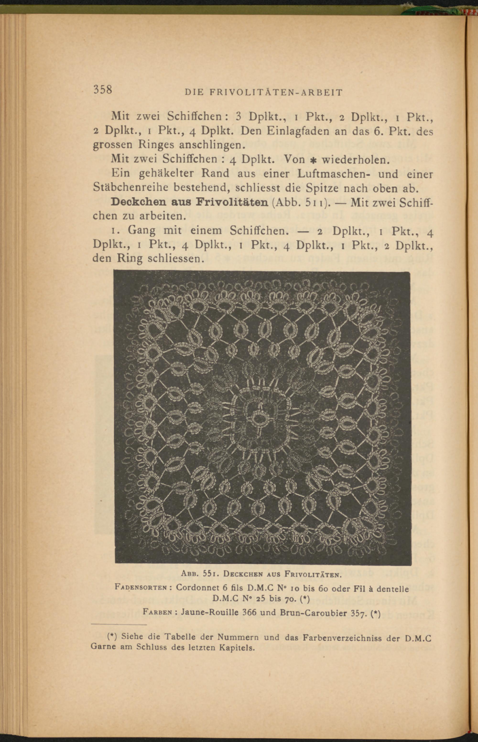 (*) Siehe die Tabelle der Nummern und das Farbenverzeichniss der D.M.C Garne am Schluss des letzten Kapitels.
