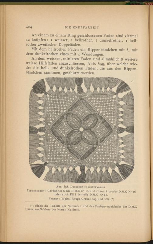 (*) Siehe die Tabelle der Nummern und das Farbenverzeichniss der D.M.C Garne am Schluss des letzten Kapitels.