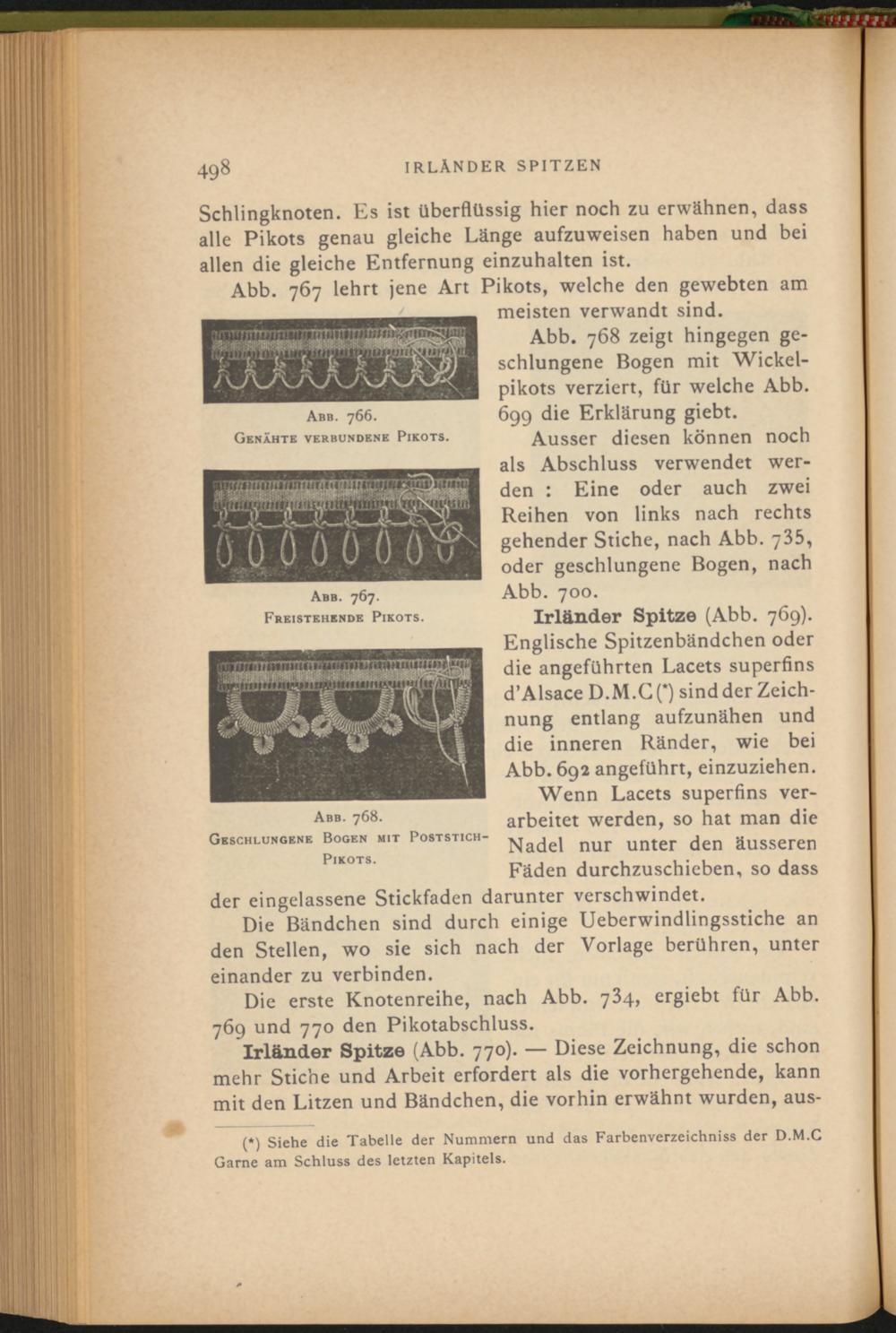 Abb. 767 lehrt jene Art Pikots, welche den gewebten am
