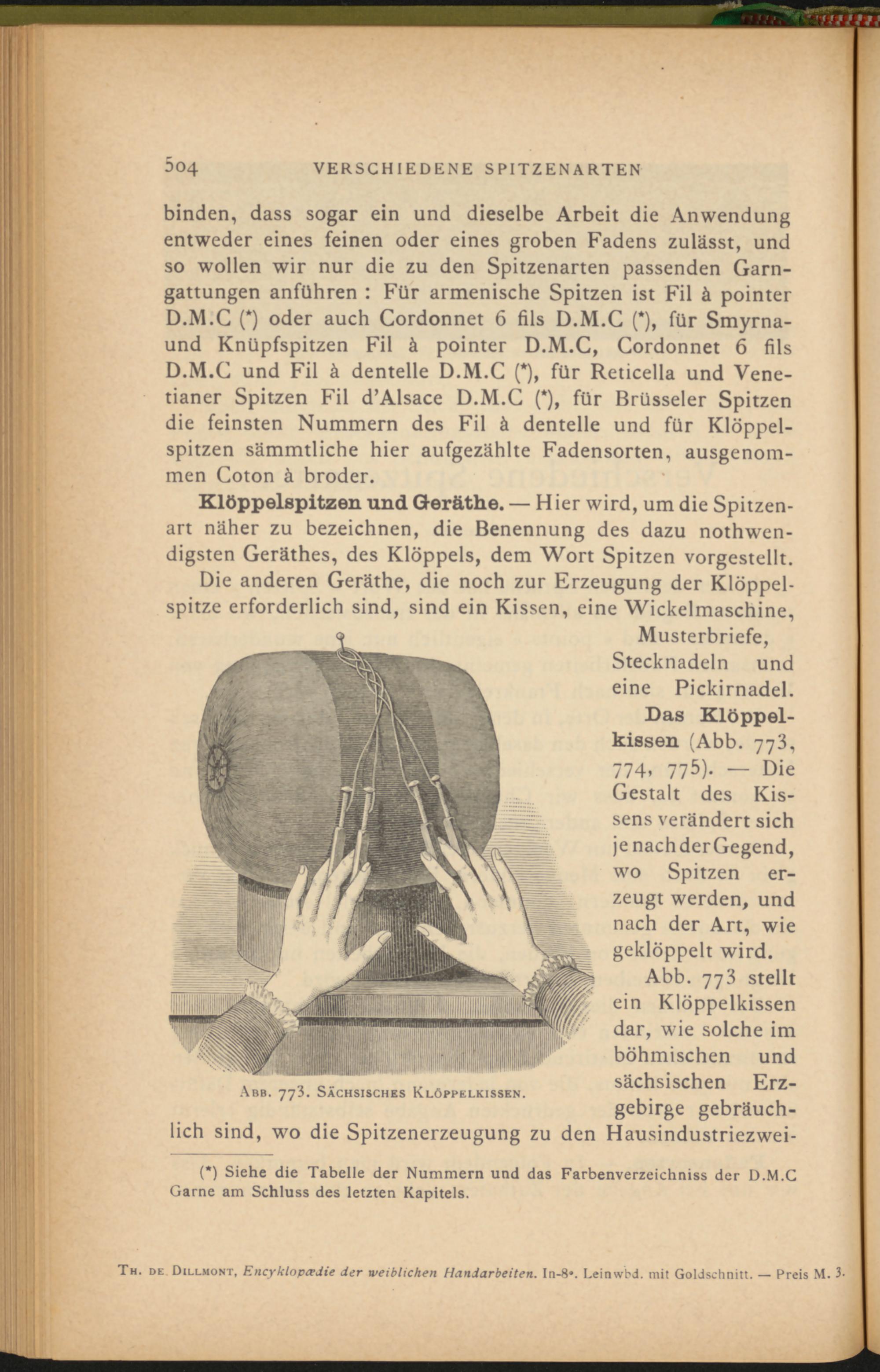 Abb. 773 stellt ein Klöppelkissen dar, wie solche im böhmischen und sächsischen Erz-