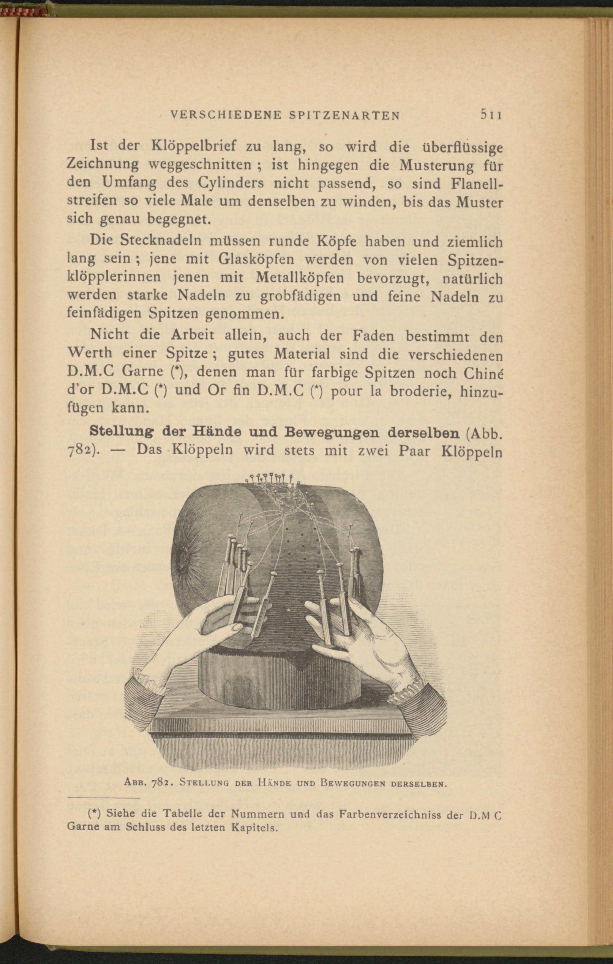 Stellung: der Hände und Bewegungen derselben (Abb. 782). — Das Klöppeln wird stets mit zwei Paar Klöppeln