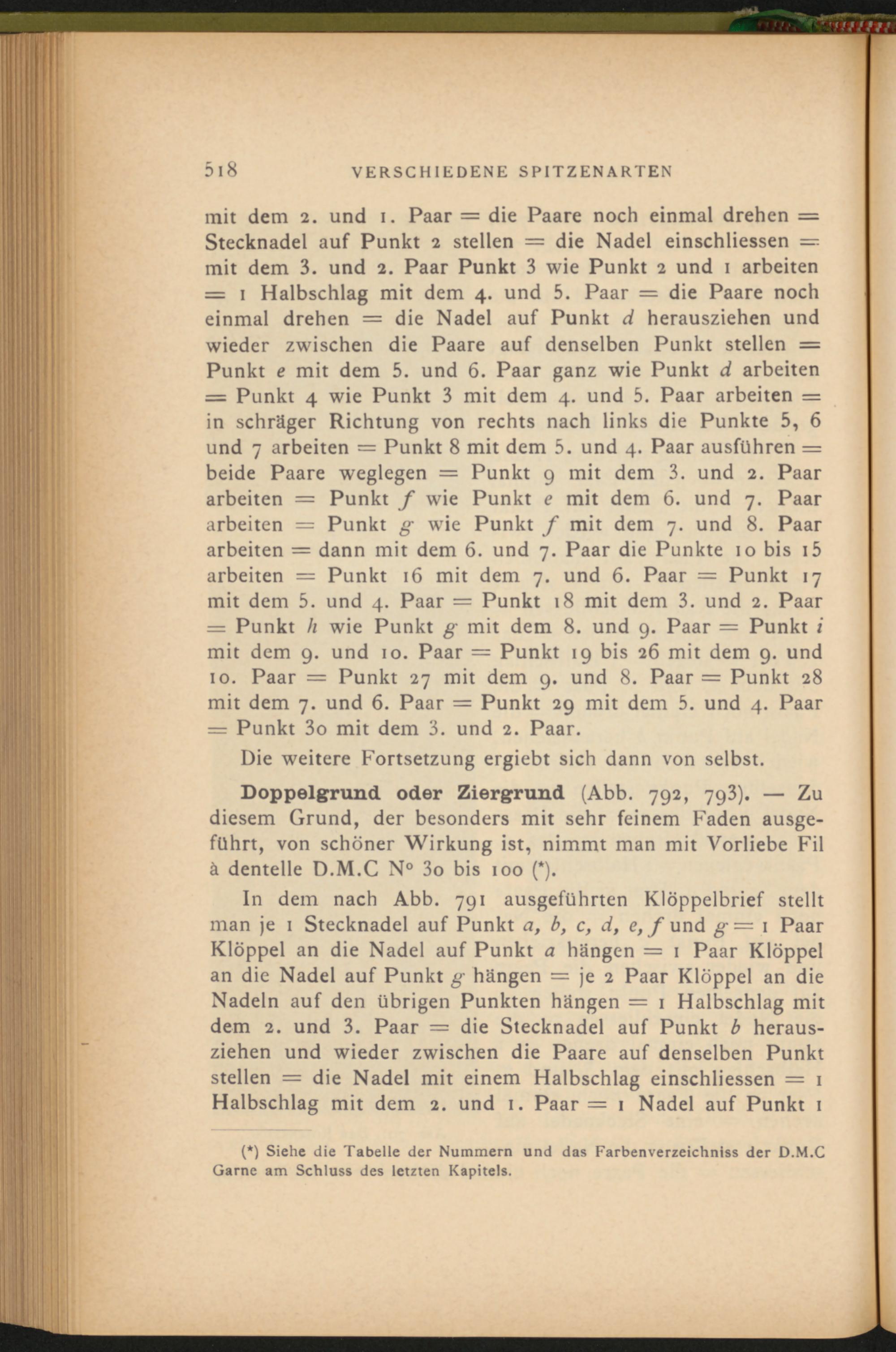 (*) Siehe die Tabelle der Nummern und das Farbenverzeichniss der D.M.C Garne am Schluss des letzten Kapitels.