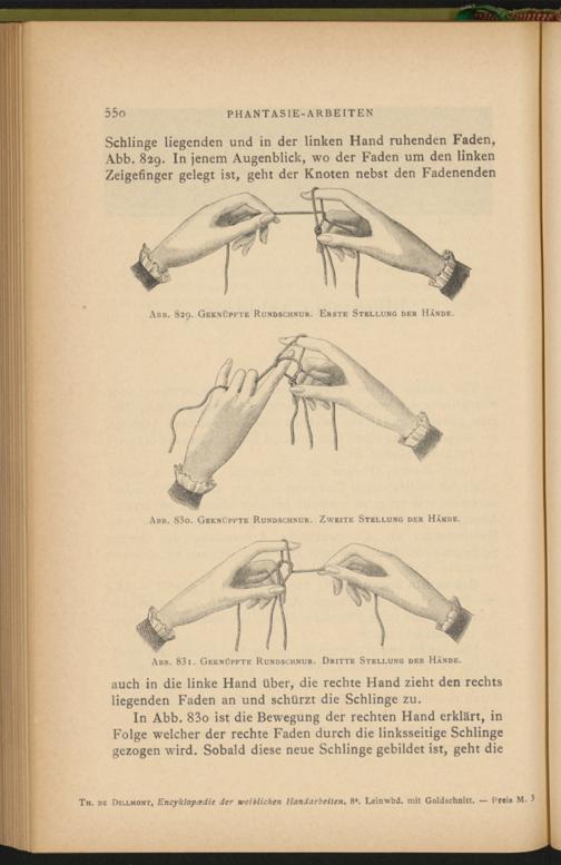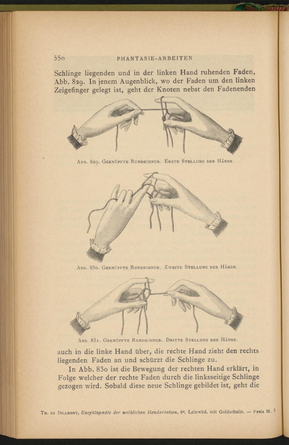Abb. 829. Geknüpfte Rundschnur. Erste Stellung der Hände.