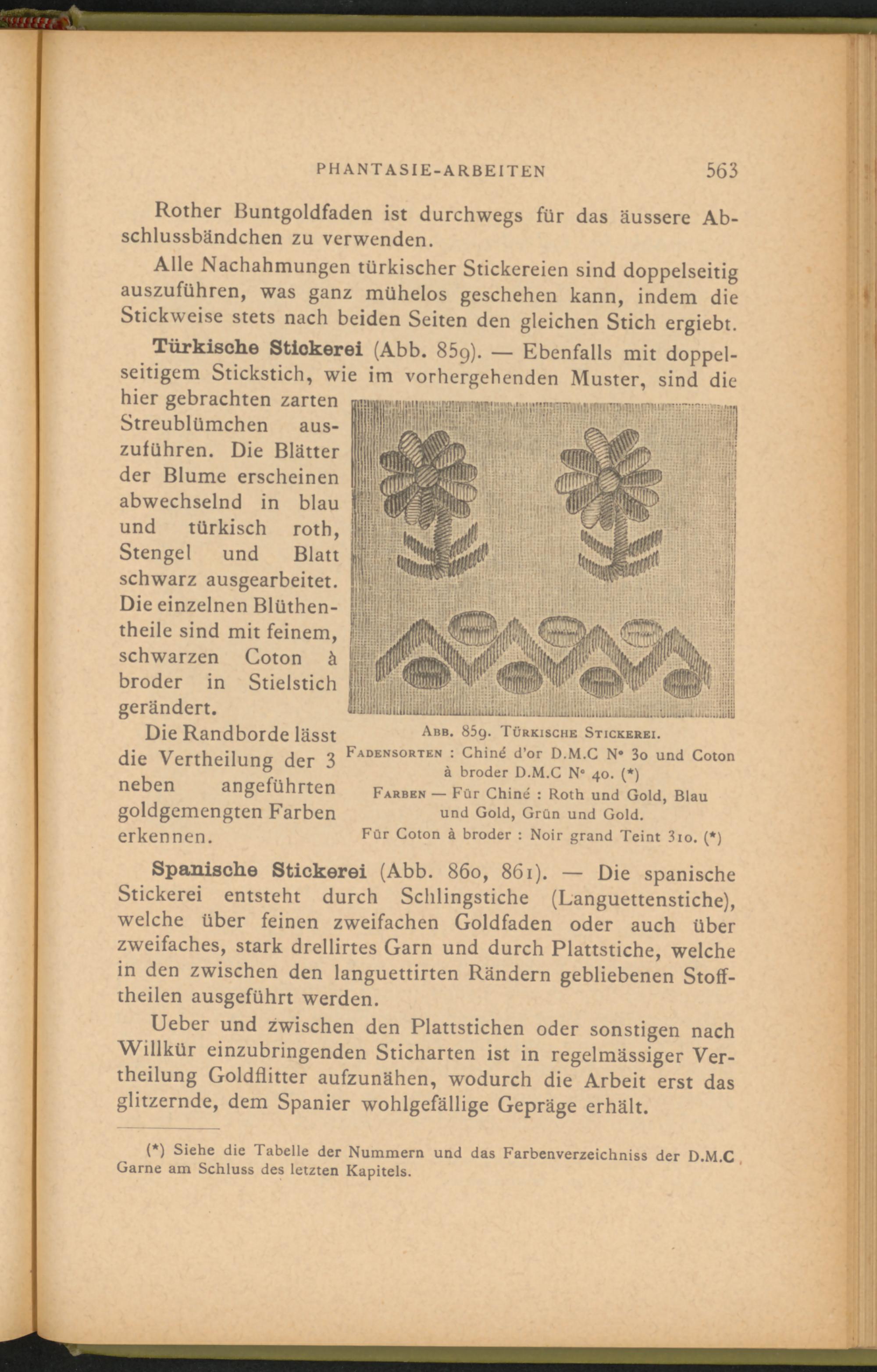Abb. 859. Türkische Stickerei. Fadensorten : Chiné d’or D.M.C N* 3o und Coton à broder D.M.C N c 40 . (*)