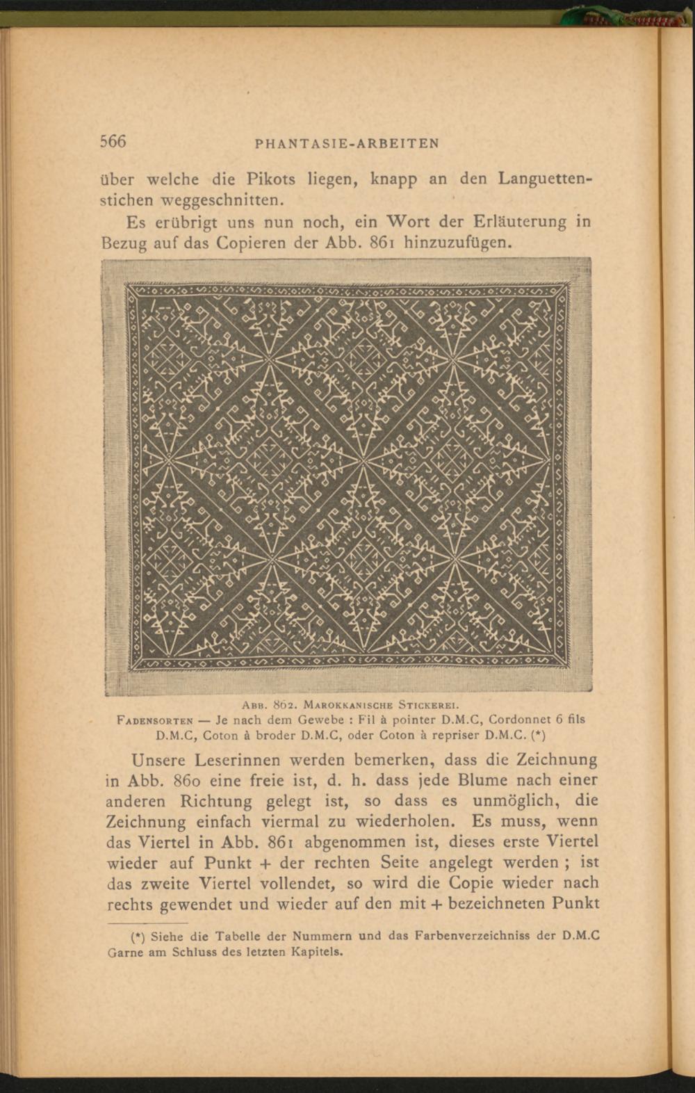 (*) Siehe die Tabelle der Nummern und das Farbenverzeichniss der D.M.C Garne am Schluss des letzten Kapitels.