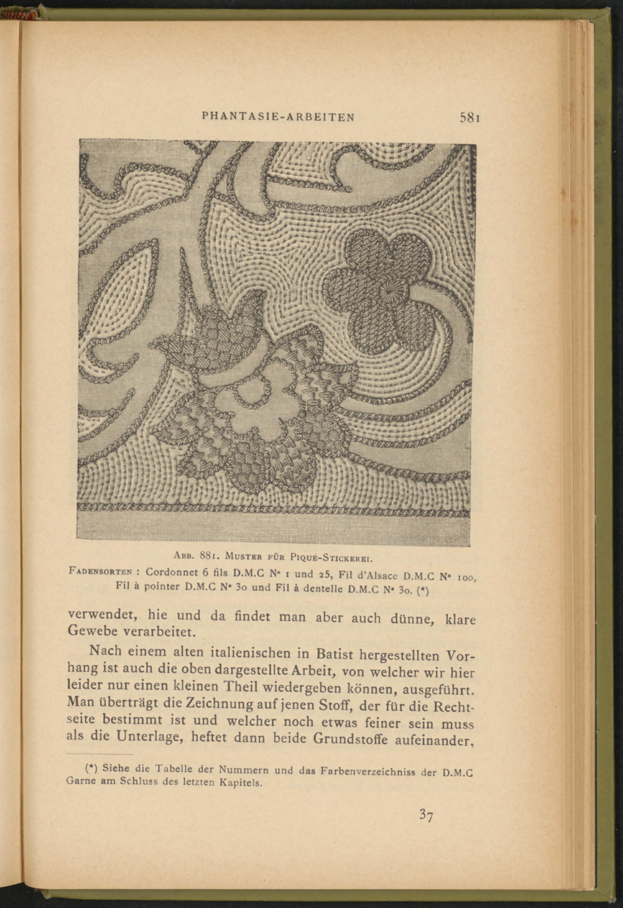 (*) Siehe die Tabelle der Nummern und das Farbenverzeichniss der D.M.C Garne am Schluss des letzten Kapitels.