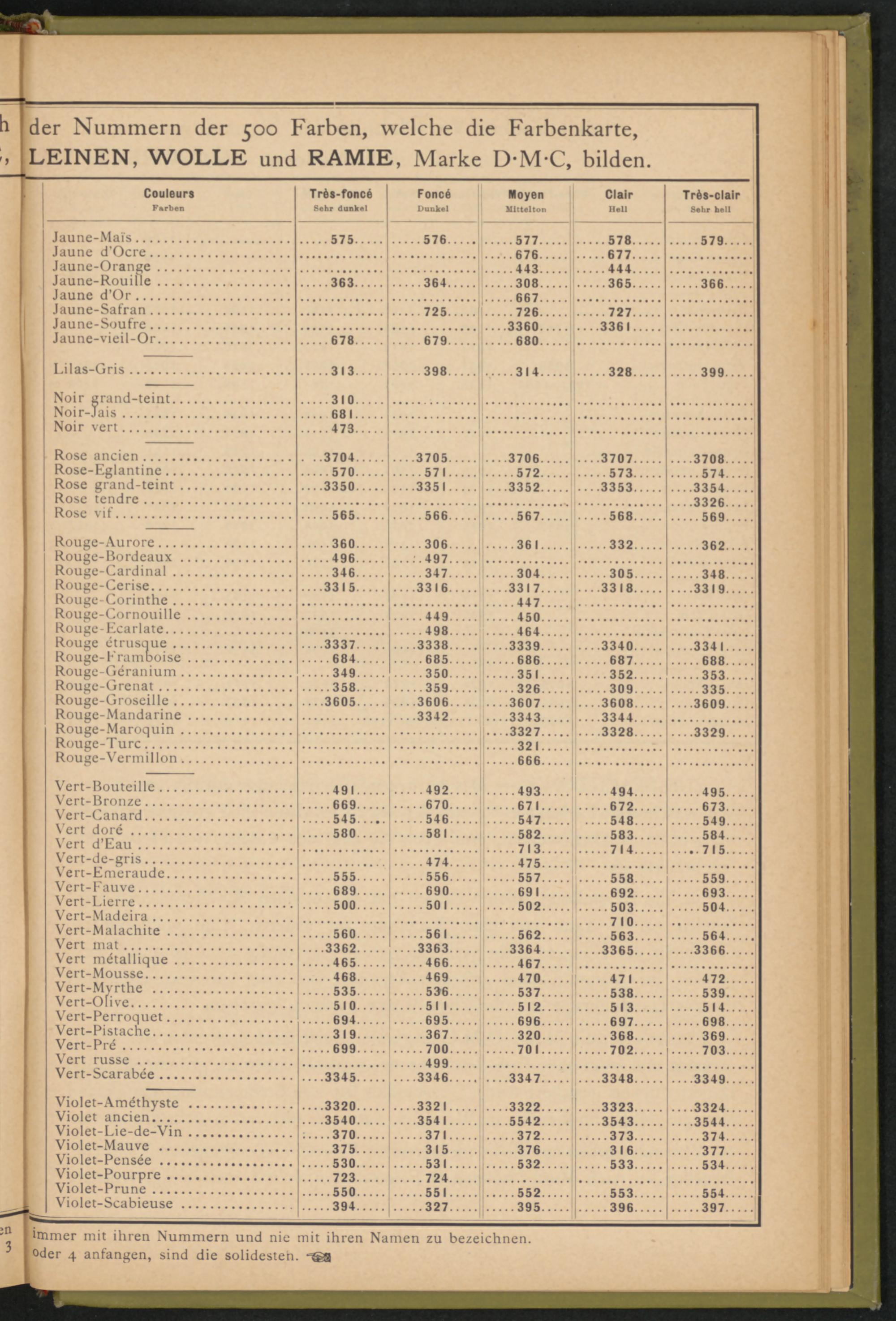 der Nummern der 500 Farben, welche die Farbenkarte,