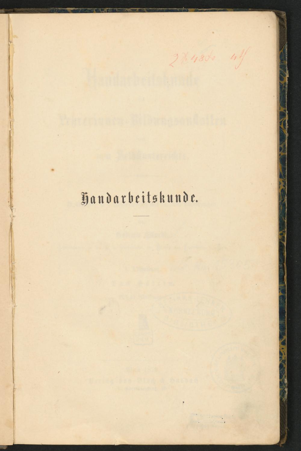 BIBL-41864: Handarbeitskunde für Lehrerinnen-Bildungsanstalten und zum Selbstunterrichte : vollständig in 4 Abtheilungen mit ca. 300 Abbildungen