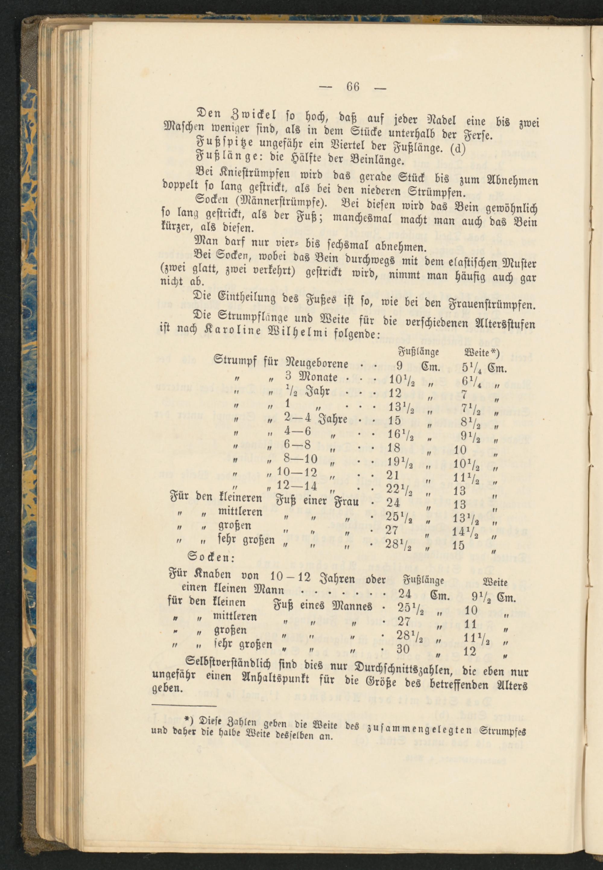 *) Diese Zahlen geben die Weite des zusammengelegten Strumpfes und daher die halbe Weile desselben an.