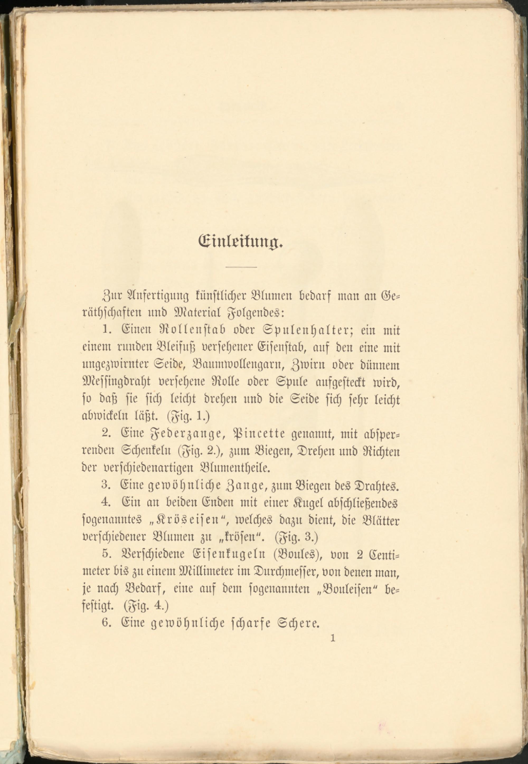 Zur Anfertigung künstlicher Blumen bedarf man an Ge- räthschaften und Material Folgendes:
