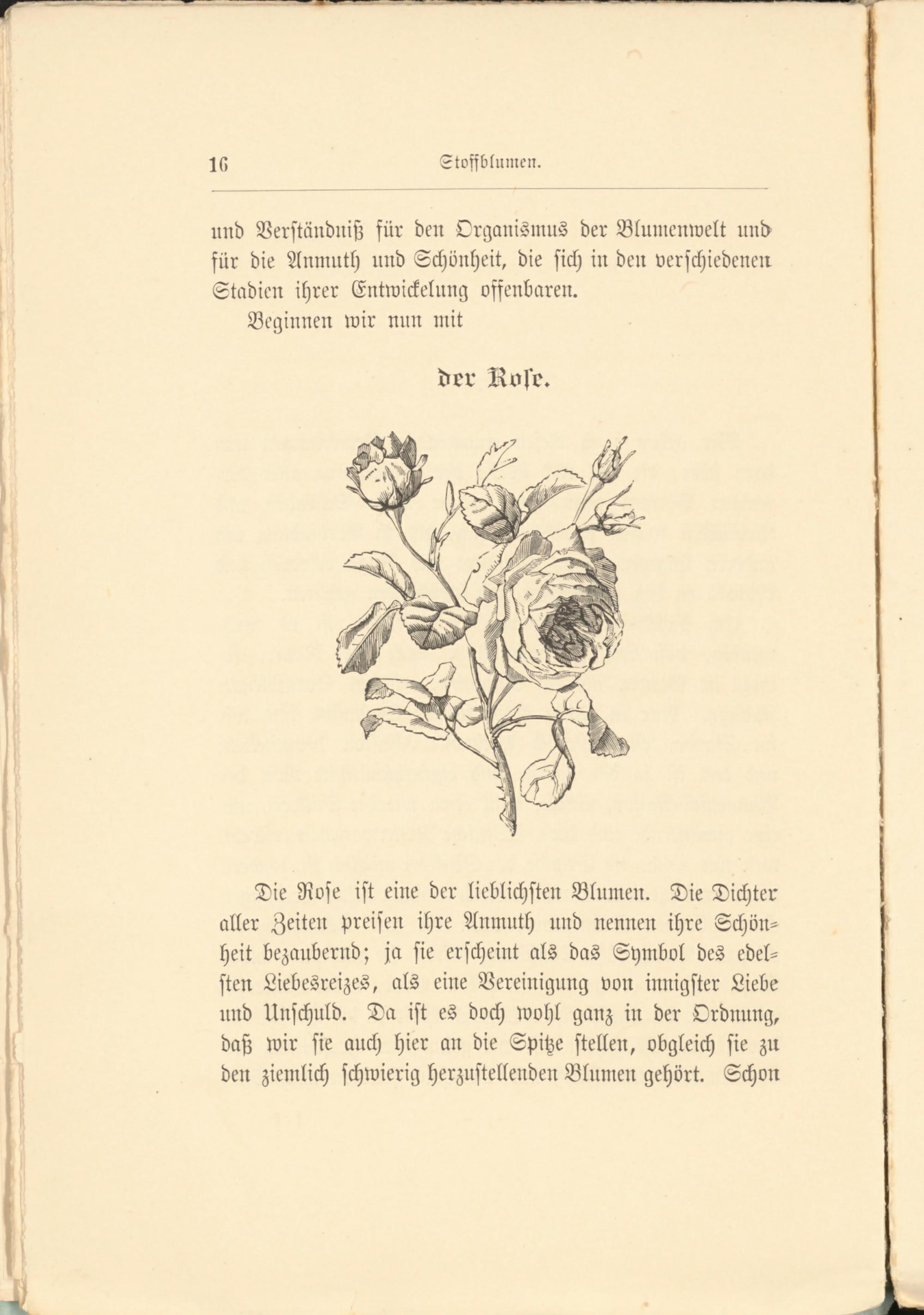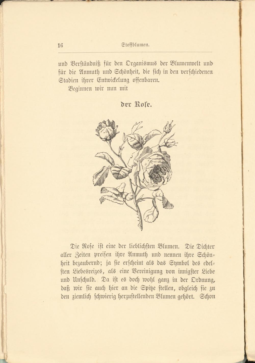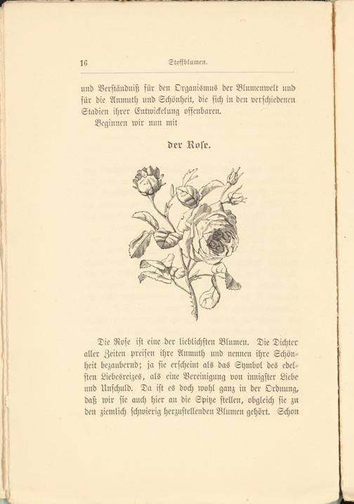Die Rose ist eine der lieblichsten Blumen. Die Dichter aller Zeiten preisen ihre Anmuth und nennen ihre Schönheit bezaubernd; ja sie erscheint als das Symbol des edelsten Liebesreizes, als eine Vereinigung von innigster Liebe und Unschuld. Da ist es doch wohl ganz in der Ordnung, daß wir sie auch hier an die Spitze stellen, obgleich sie zn den ziemlich schwierig herzustellenden Blumen gehört. Schon