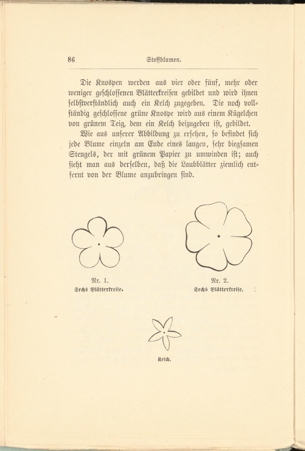 Wie aus unserer Abbildung zu ersehen, so befindet sich jede Blume einzeln am Ende eines langen, sehr biegsamen Stengels, der mit grünem Papier zu umwinden ist; auch sieht man aus derselben, daß die Laubblätter ziemlich entfernt von der Blume anzubringen sind.