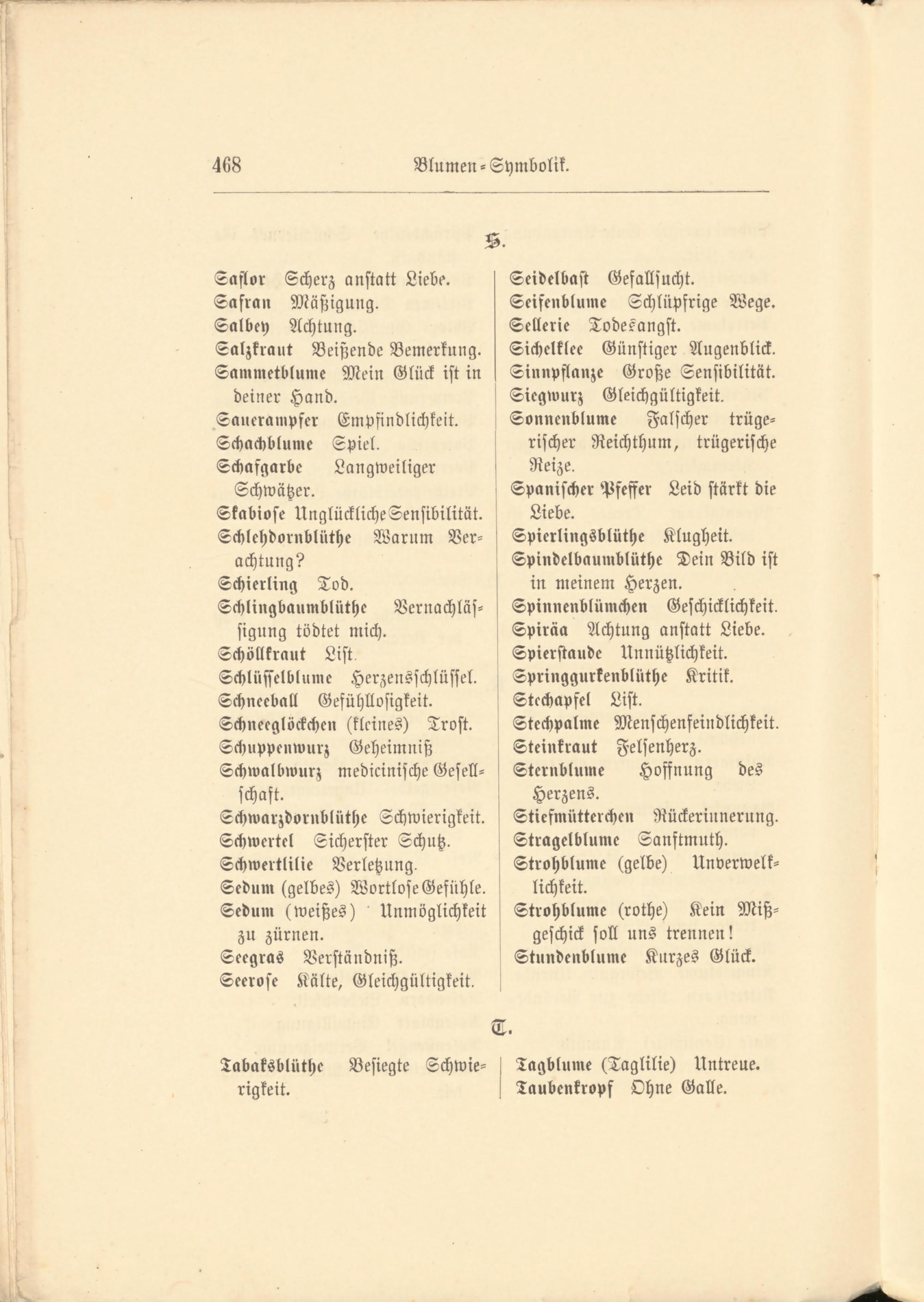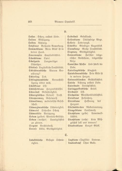 Schöllkraut List Schlüsselblume Herzensschlüssel. Schneeball Gefühllosigkeit. Schneeglöckchen (kleines) Trost. Schuppenwurz Geheimniß Schwalbwurz medicinische Gesellschaft.