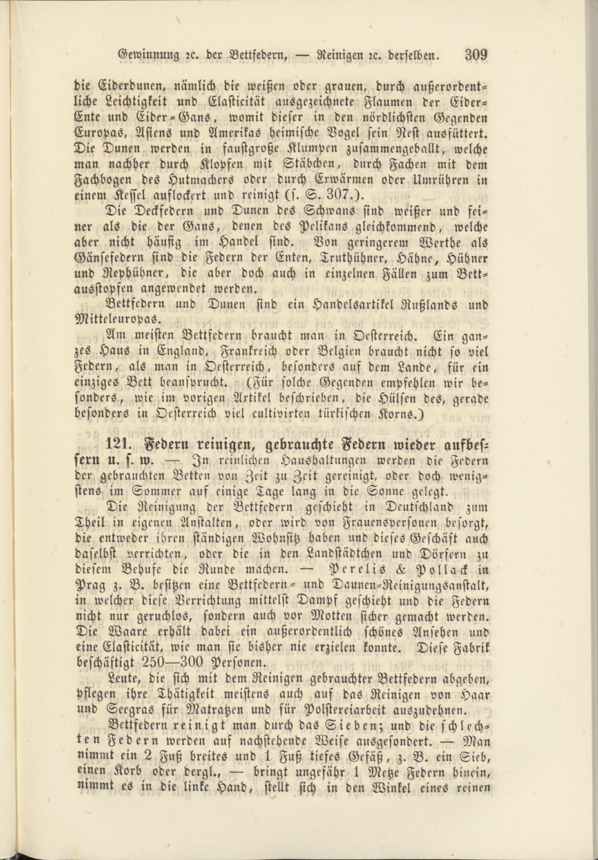 Gewinnung rc. der Bettfedern, — Reinigen rc. derselben. 309