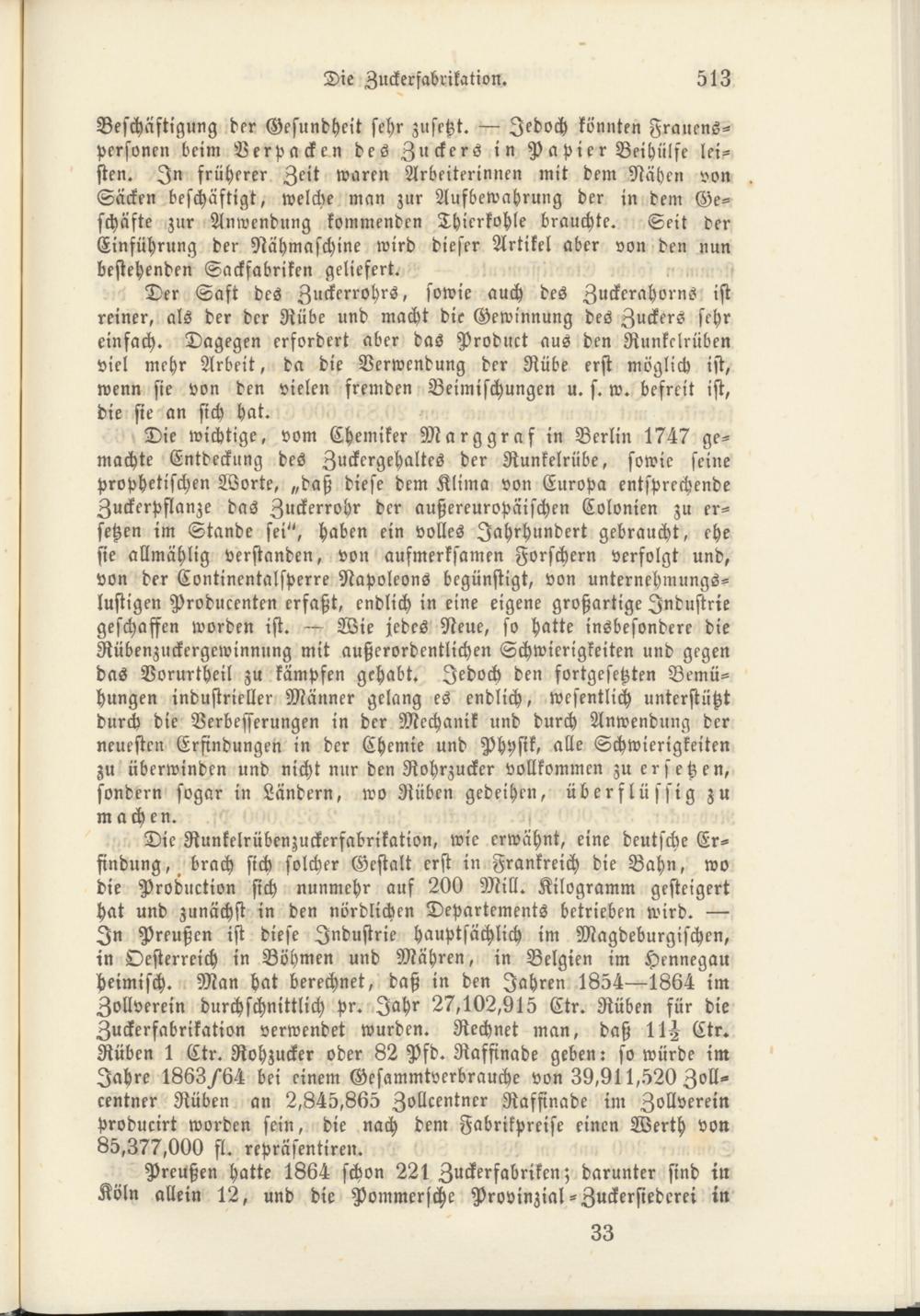 Preußen hatte 1864 schon 221 Zuckerfabriken; darunter sind in Köln allein 12, und die Pommersche Provinzial-Zuckersiederei in