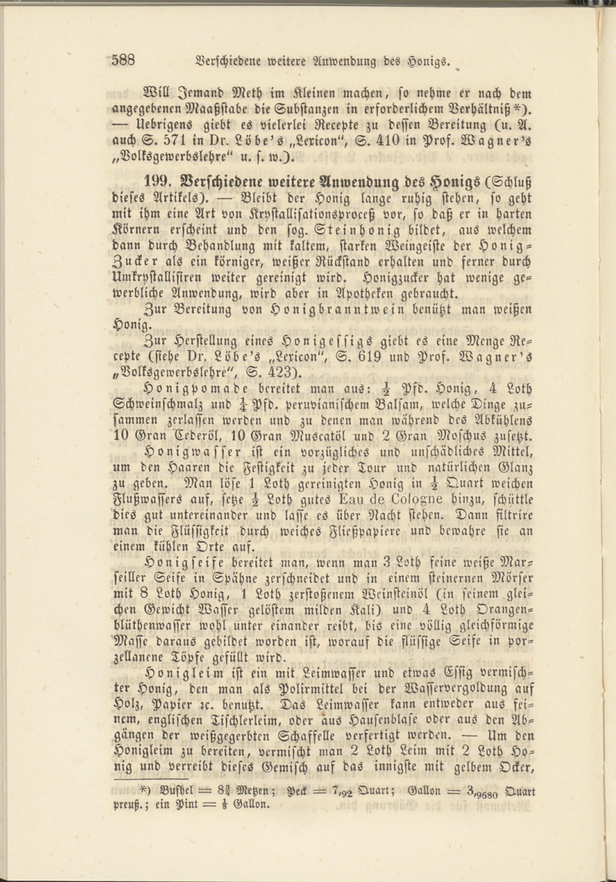 Will Jemand Meth im Kleinen machen, so nehme er nach dem angegebenen Maaßstabe die Substanzen in erforderlichem Verhältniß*). — Uebrigens giebt es vielerlei Recepte zu dessen Bereitung (u. A. auch S. 571 in Dr. Lö be's „Lexicon", S. 410 in Pros. Wagner's „Volksgewerbslehre" u. s. w.).