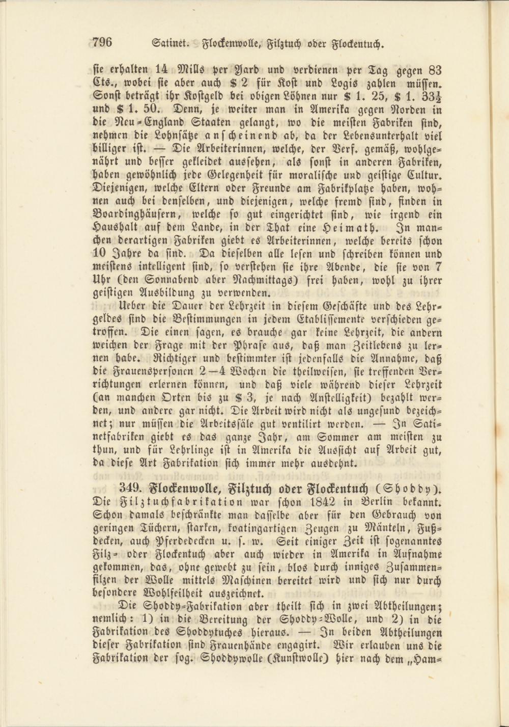 Ueber die Dauer der Lehrzeit in diesem Geschäfte und des Lehrgeldes sind die Bestimmungen in jedem Etablissemente verschieden getroffen. Die einen sagen, es brauche gar keine Lehrzeit, die andern weichen der Frage mit der Phrase aus, daß man Zeitlebens zu lernen habe. Richtiger und bestimmter ist jedenfalls die Annahme, daß die Frauenspersonen 2—4 Wochen die theilweisen, sie treffenden Verrichtungen erlernen können, und daß viele während dieser Lehrzeit (an manchen Orten bis zu S 3, je nach Anstelligkeit) bezahlt werden, und andere gar nicht. Die Arbeit wird nicht als ungesund bezeichnet; nur müssen die Arbeitssäle gut ventilirt werden. — In Sati- netfabriken giebt es das ganze Jahr, am Sommer am meisten zu thun, und für Lehrlinge ist in Amerika die Aussicht auf Arbeit gut, da diese Art Fabrikation sich immer mehr ausdehnt.