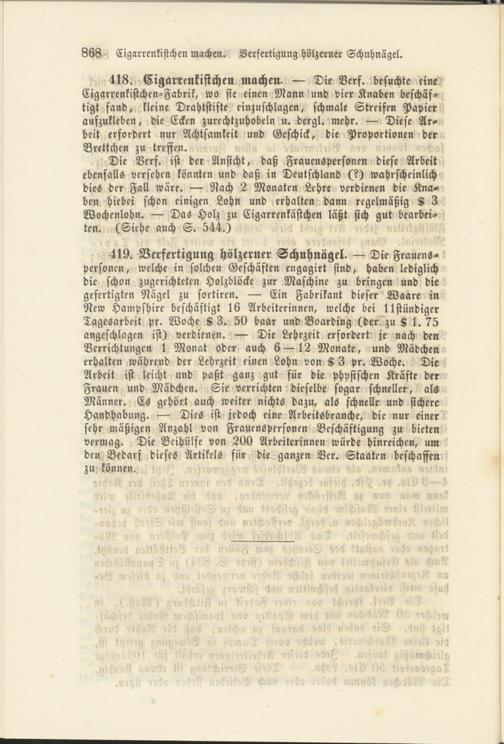 868 Cigarrenkistchen machen. Verfertigung hölzerner Schuhnägel.