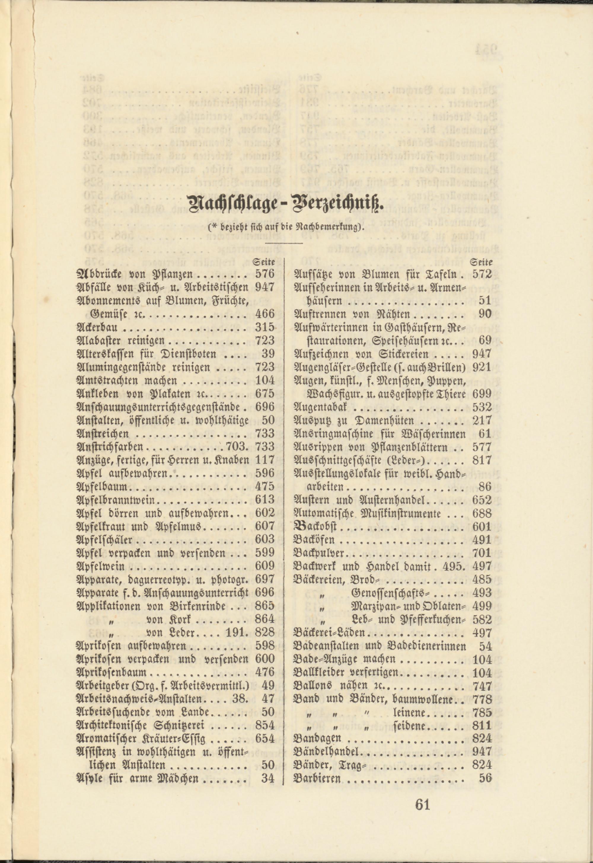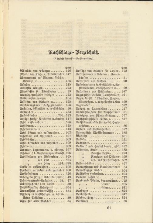 Aufsätze von Blumen für Tafeln. 572 Aufseherinnen in Arbeits- u. Armenhäusern . 51
