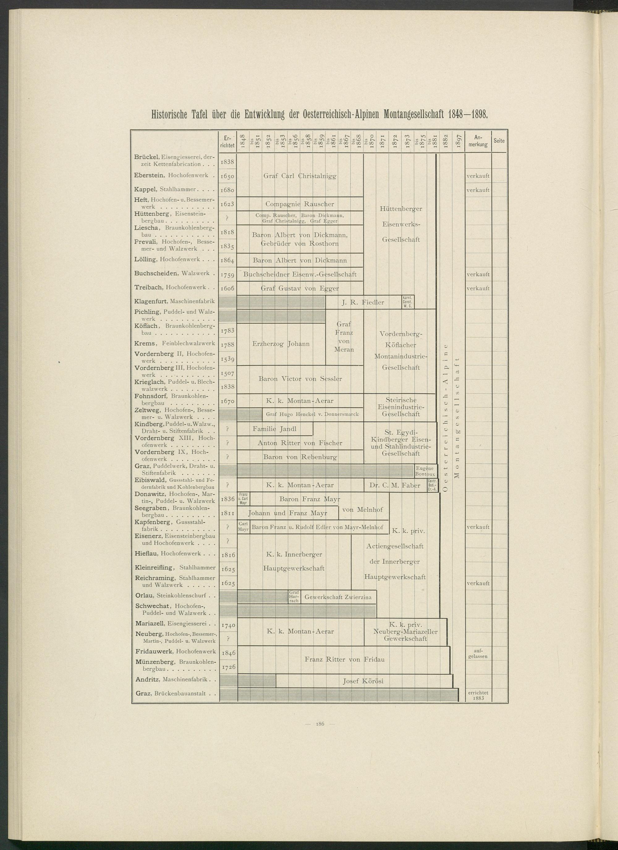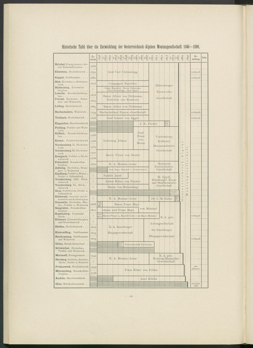 Tafel über die Entwicklung der Oesterreichisch-Alpinen Montangesellschaft 1848-1898.